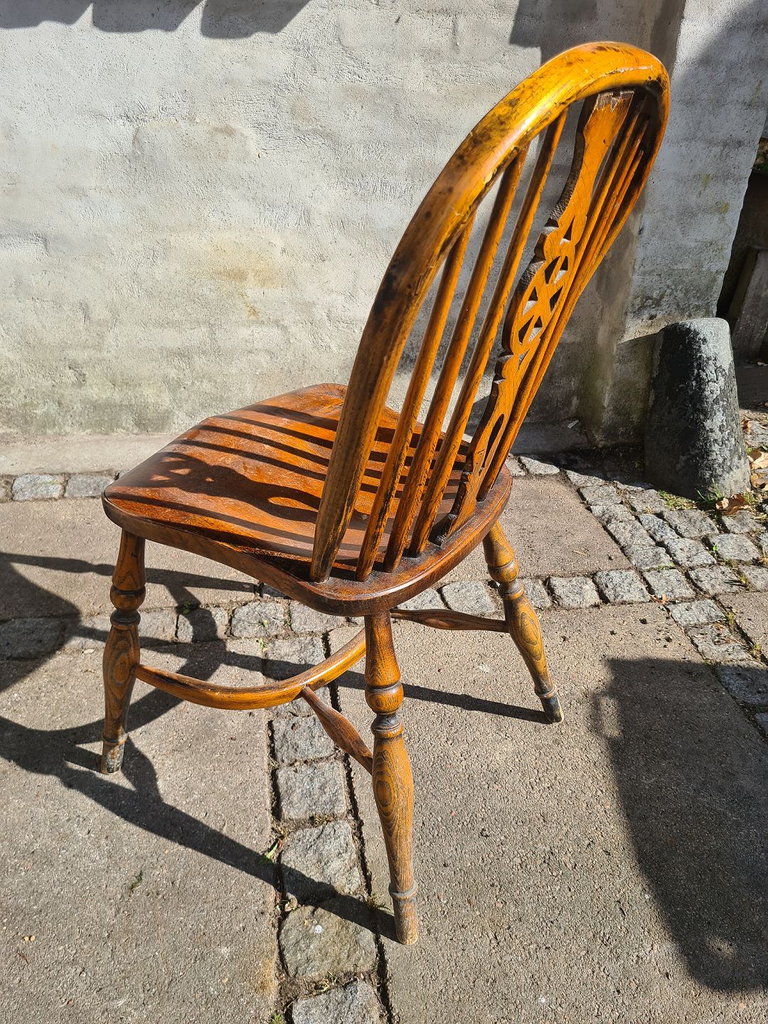 Pindestol fra 1920´erne i fyr. Fremstår god, stabil og uden nævneværdige brugsspor. Højde 87 cm. Bredde 41 cm. Dybde 49 cm. Sædehøjde 44 cm. Emne nummer: 80579