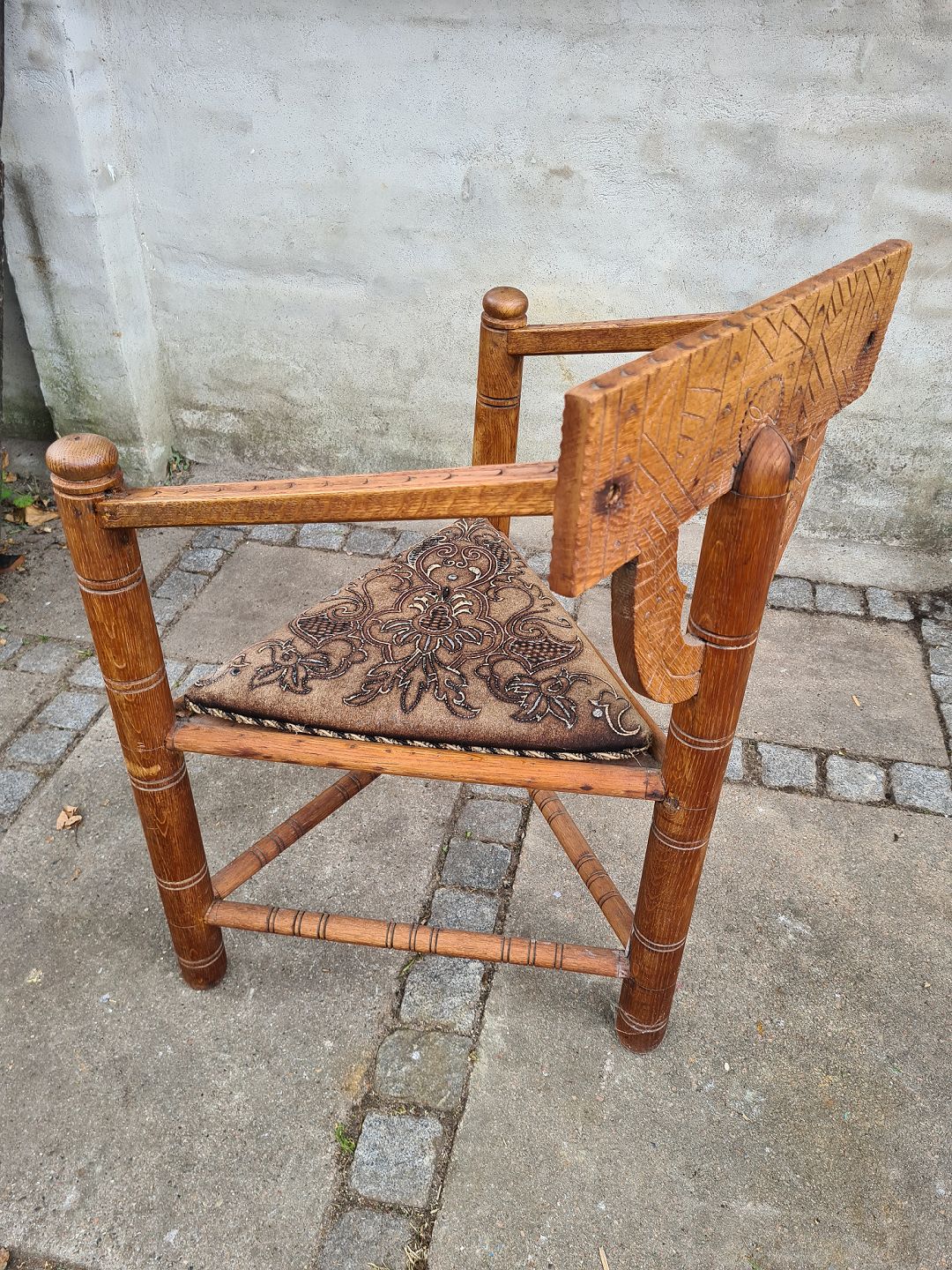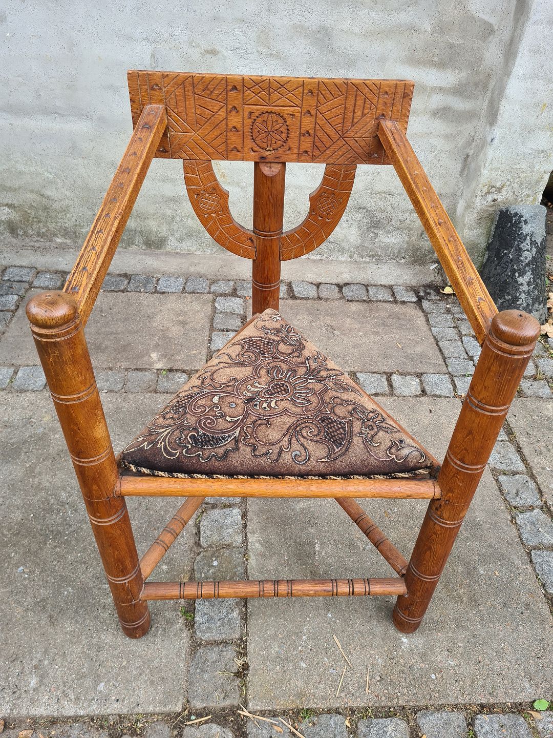 Armstol fra 1940'erne I fyr. Fremstår pæn, velholdt og udmærket stabil. Højde 86 cm. Bredde 58 cm. Dybde 50 cm. Sædehøjde 45 cm. Emne nummer: 80609