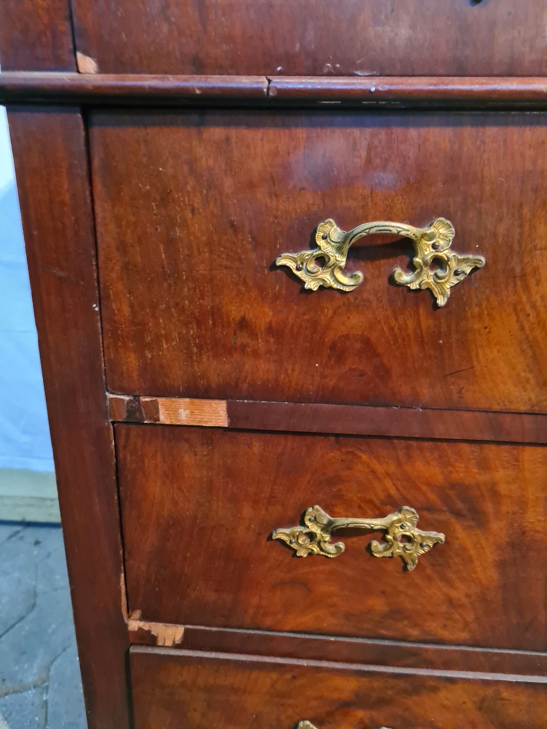 Kommode i fineret mahogni, fra 1900erne. Den har brugsspor og div. små defekter. Højde 81cm Bredde 77cm Dybde 48cm Emne nummer: 91112