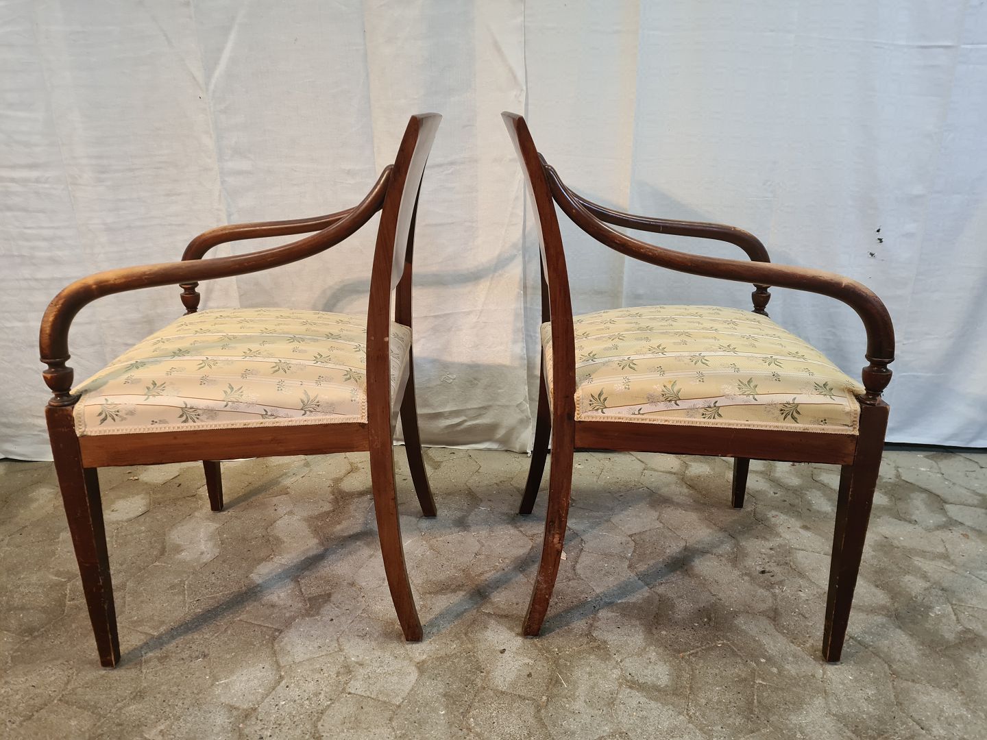 2 Armstole i mahogni og bøgetræ, fra 1910erne. De har brugsspor. Ryghøjde 85cm Sædehøjde 47cm Emne nummer: 91072