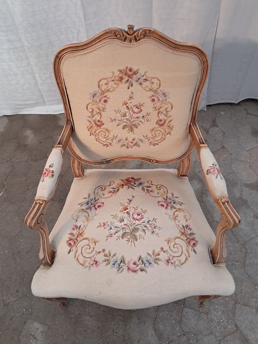 Rokokostol i massivt bøgetræ, fra 1950erne. Den har små brugsspor. Ryghøjde 90cm Sædehøjde 42cm Emne nummer: 91165