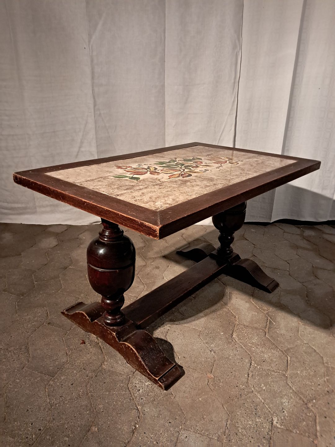 Sofabord i egetræ med kakler, fra 1930erne. Det har brugsspor. Højde 52cm Bredde 57cm Længde 88cm Emne nummer: 91178