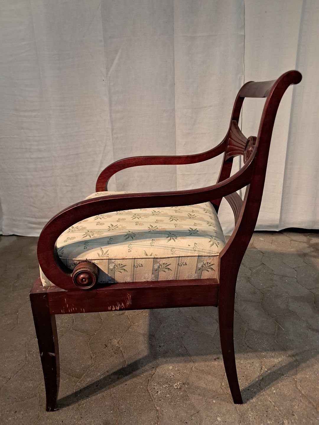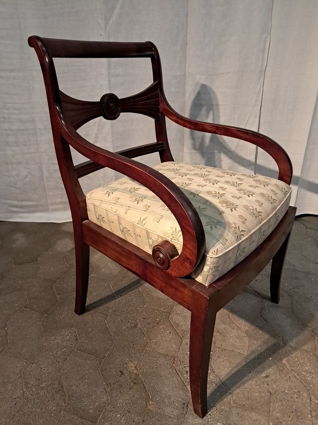 Armstol i massivt mahogni, fra 1910erne. Den har brugsspor. Ryghøjde 86cm Sædehøjde 46cm Emne nummer: 91192