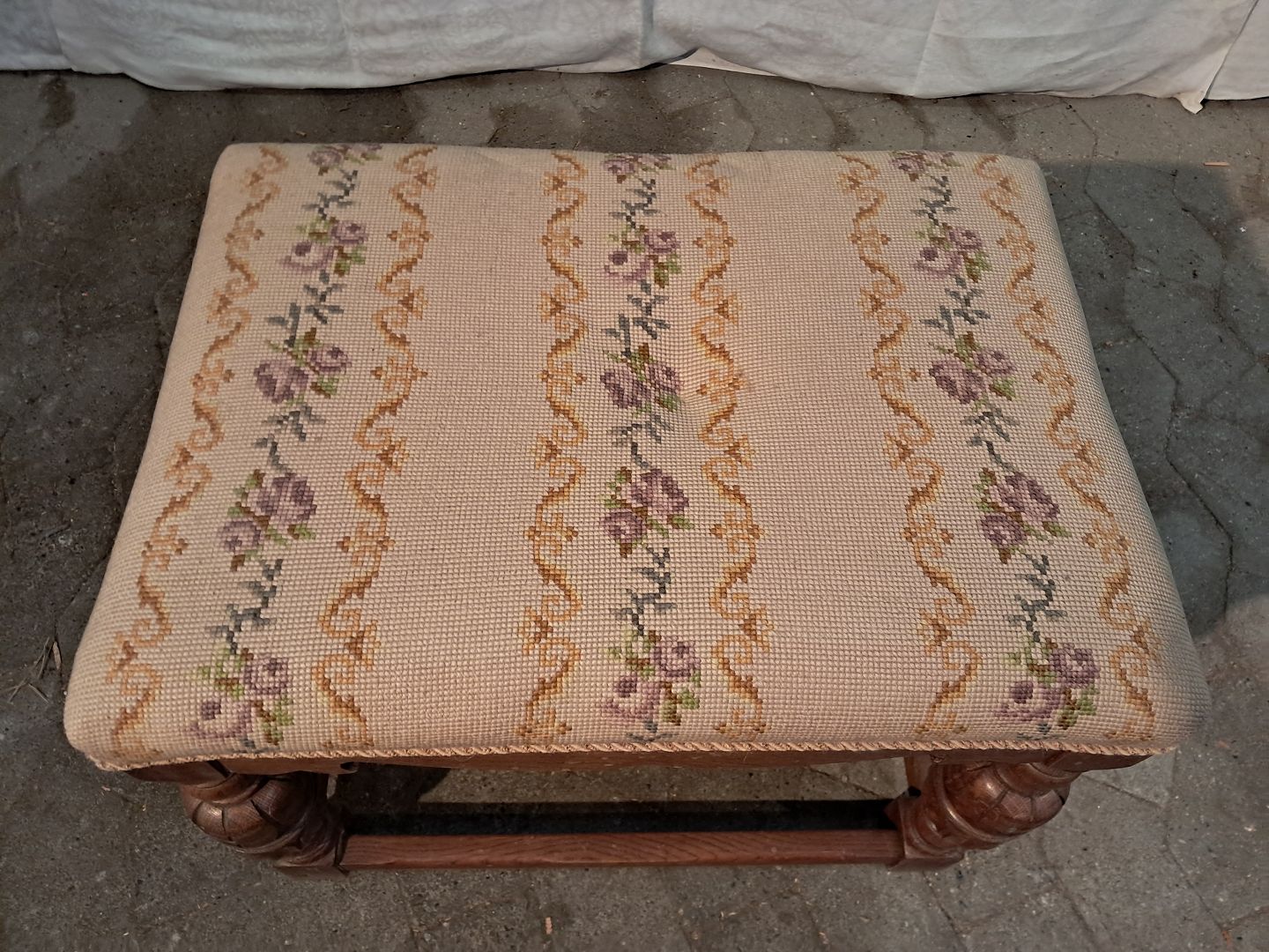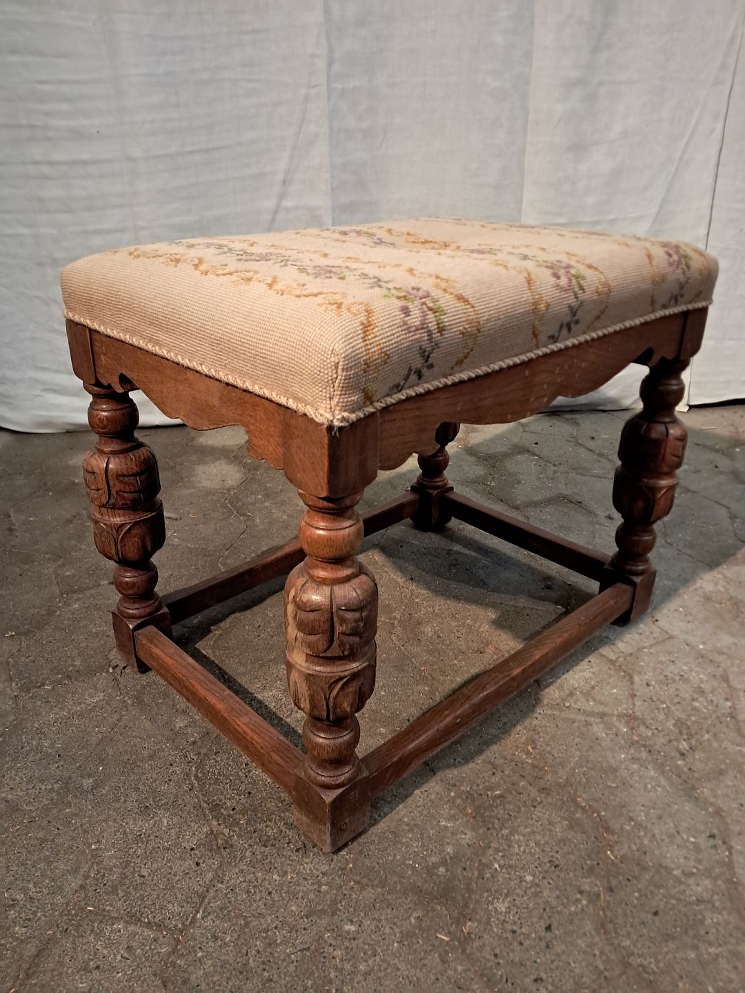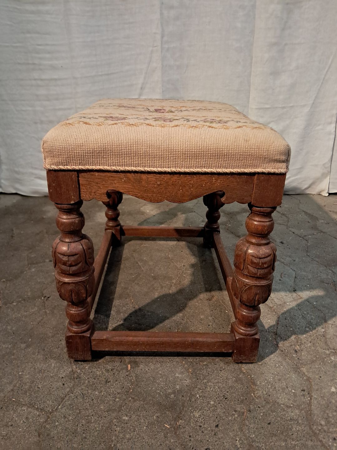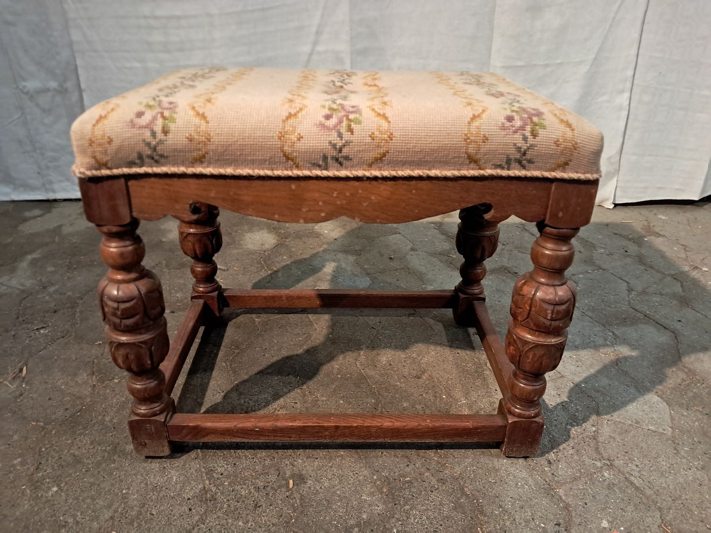 Skammel i massivt egetræ, fra 1930erne. Den har brugsspor. Højde 44cm Bredde 37cm Længde 53cm Emne nummer: 91295