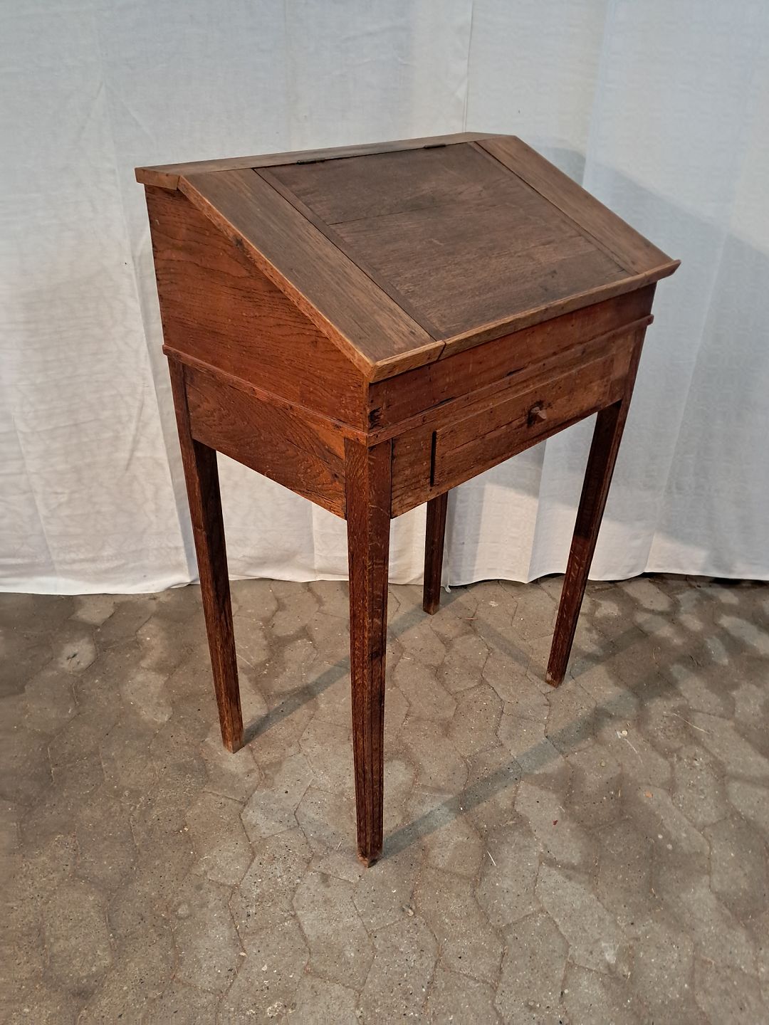 Skrivepult i massivt egetræ, fra 1900erne. Den har brugsspor. Højde 117cm Bredde 75cm Dybde 49cm Emne nummer: 91351