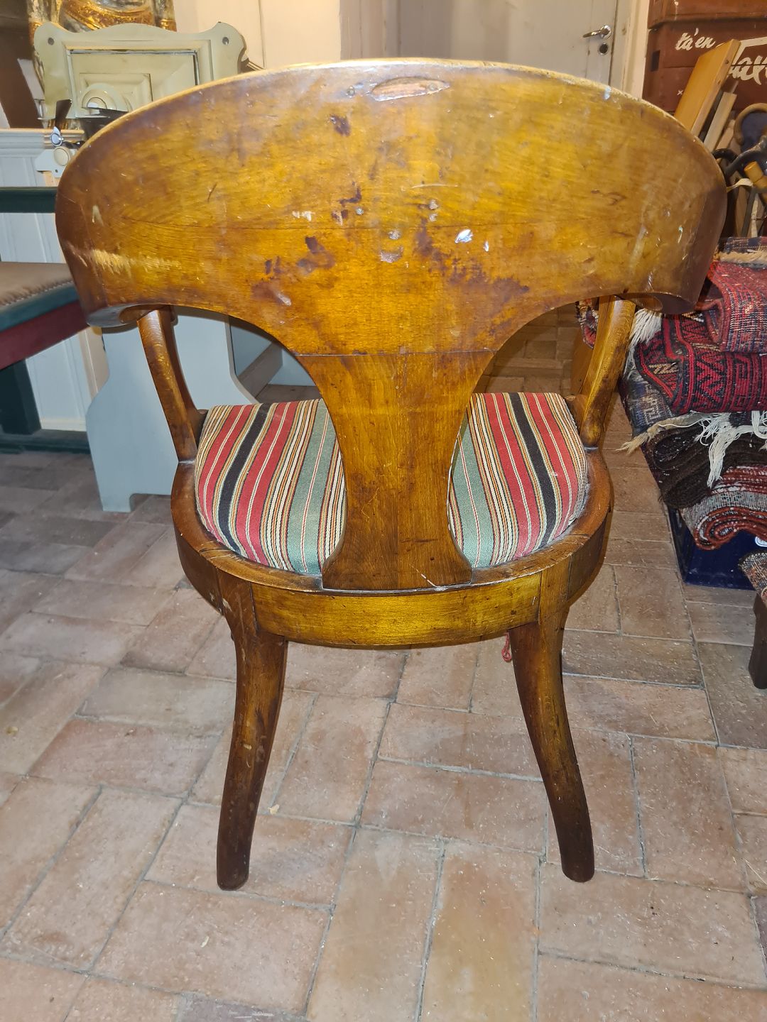 Armstol udført i mahogni samt sæde betrukket med uldstof.