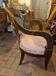 Armstol i mahogni med sæde betrukket i stof. Produceret ca. år 1900