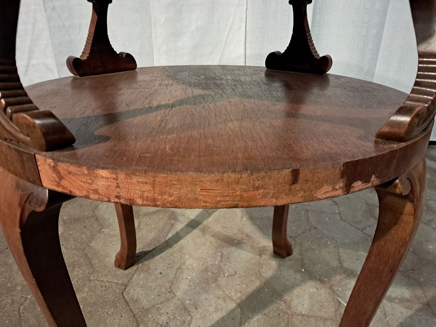 Det har brugsspor og defekt finer og en lille skade. (se foto)