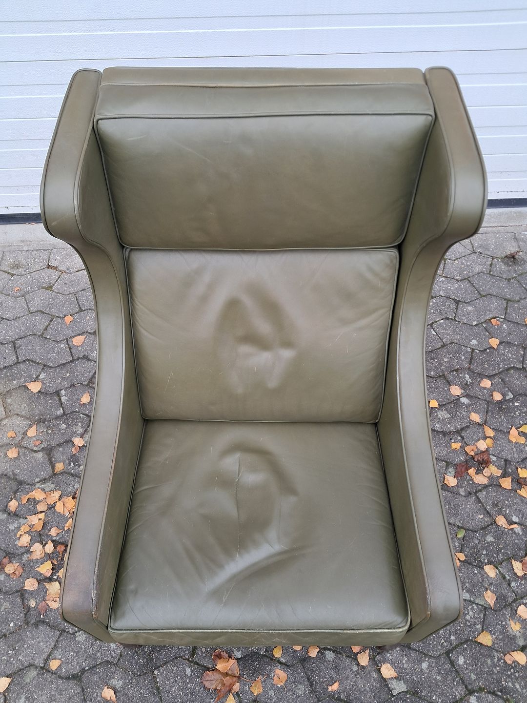 Lænestol i læder, fra 1980erne. Den har brugsspor. Ryghøjde 109cm Sædehøjde 46cm Bredde 72cm Dybde 87cm Emne nummer: 76041