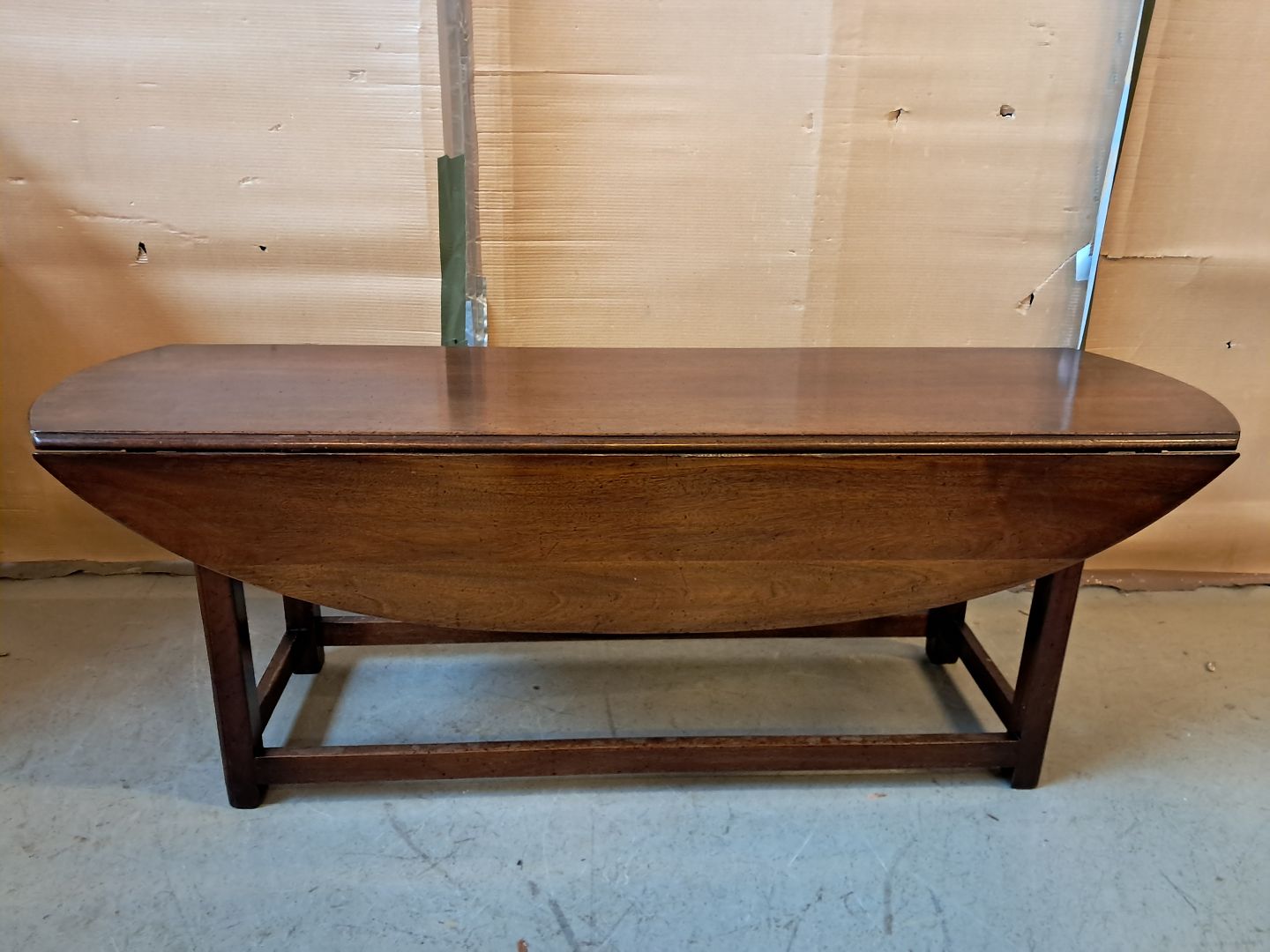 Sofabord i massivt mahogni, fra 1980erne. Det har brugsspor. Højde 54cm Længde 152cm Bredde 45cm Bredde med klapper 90cm Emne nummer: 76065