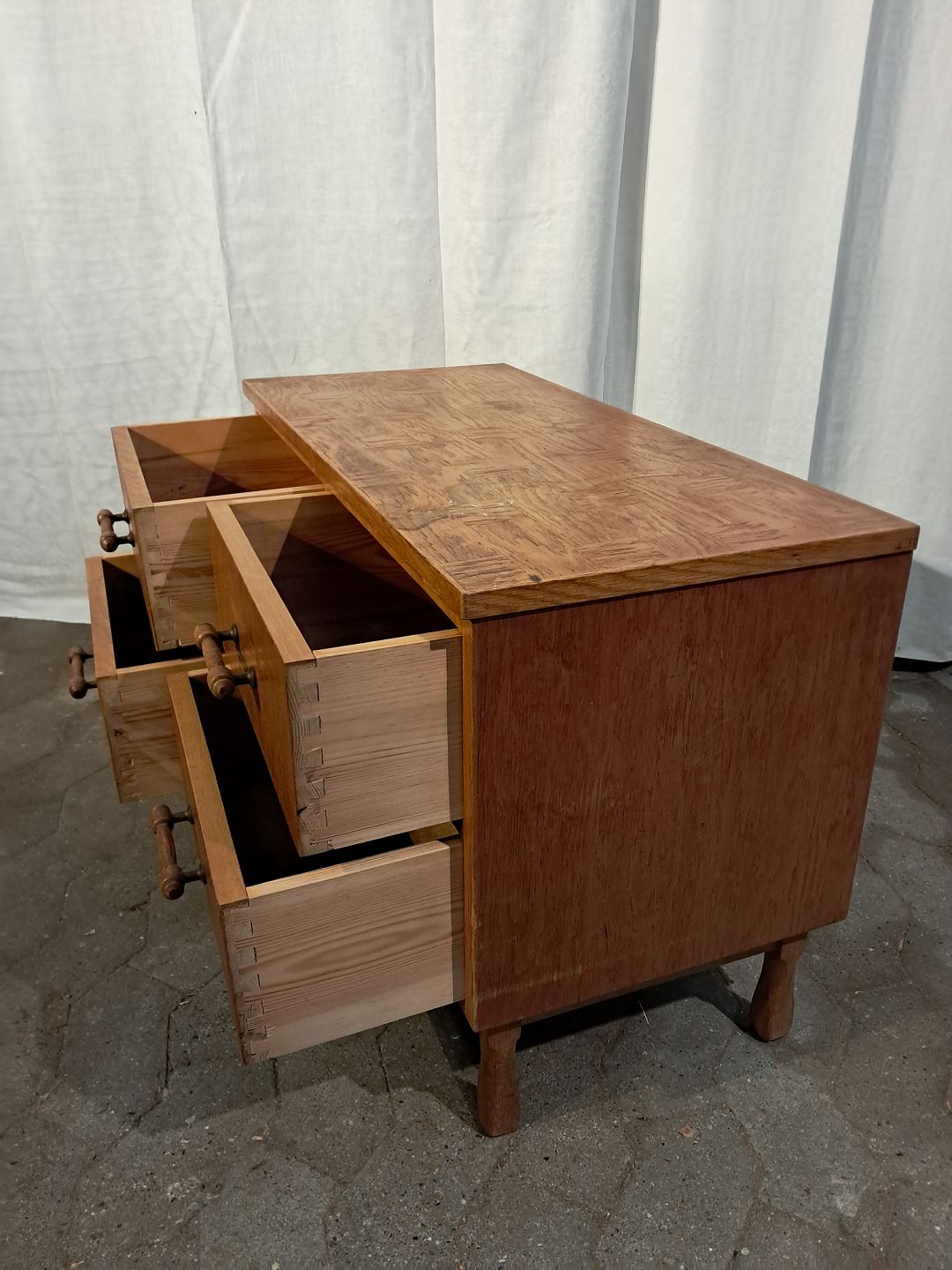 Spejl og konsol i fineret egetræ, fra 1970erne. De har brugsspor og konsollet har defekt finer. Spejl højde 107cm Bredde 54cm Konsol højde 55cm Bredde 85cm Dybde 39cm Emne nummer: 91429