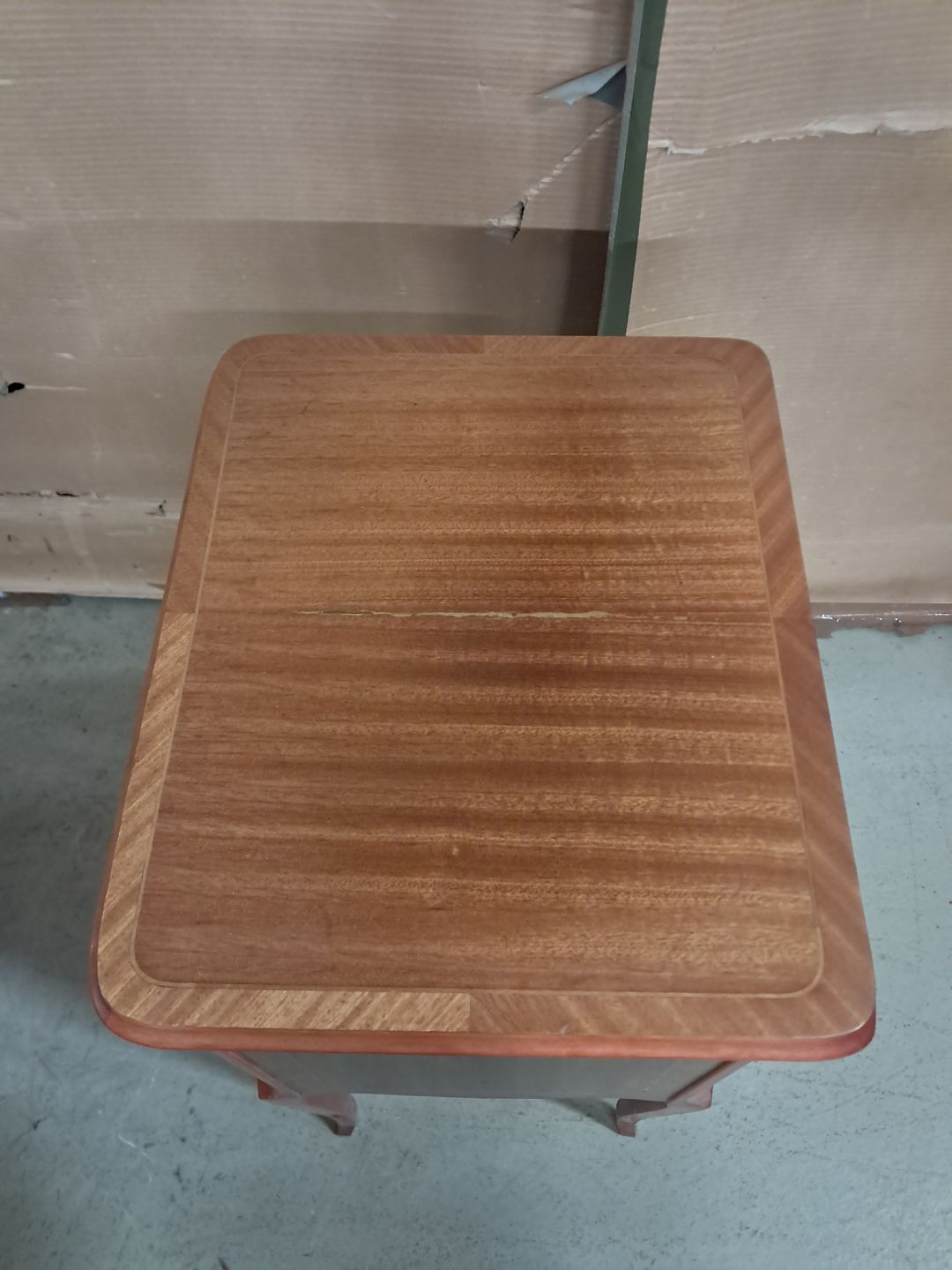 Kommode med intarsia i fineret mahogni, fra 1980erne. Den har brugsspor. Højde 70cm Bredder 37cm Dybde 30cm Emne nummer: 76098