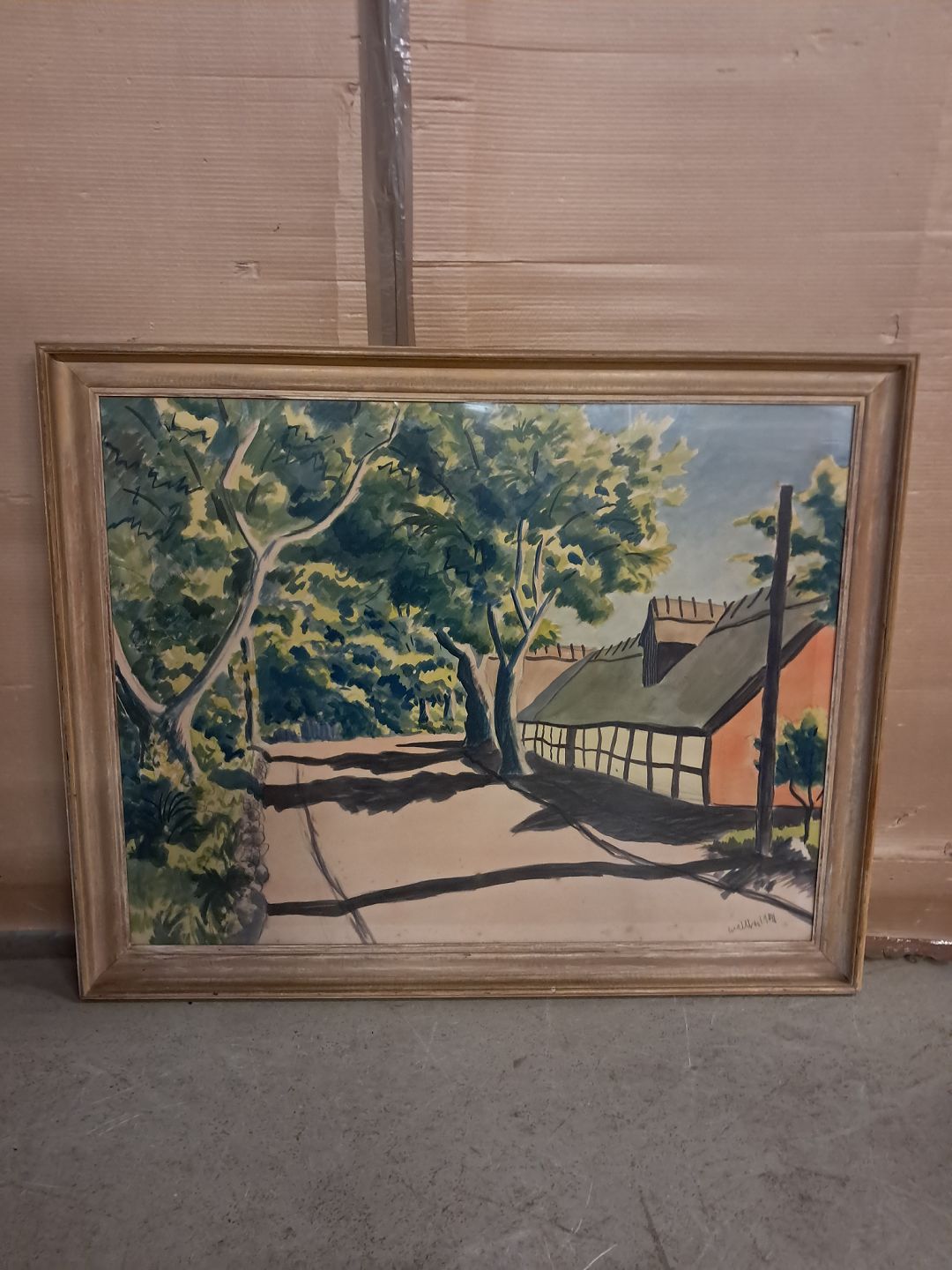 Billede i glas og ramme i massivt fyrretræ, fra 1940erne.