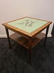 Dansk møbelproducent kvadratisk sofabord med hylde. Udført i fineret palisander samt plade ilagt grønne kakler med blomster dekoration. Fremstillet ca. 1960'erne.