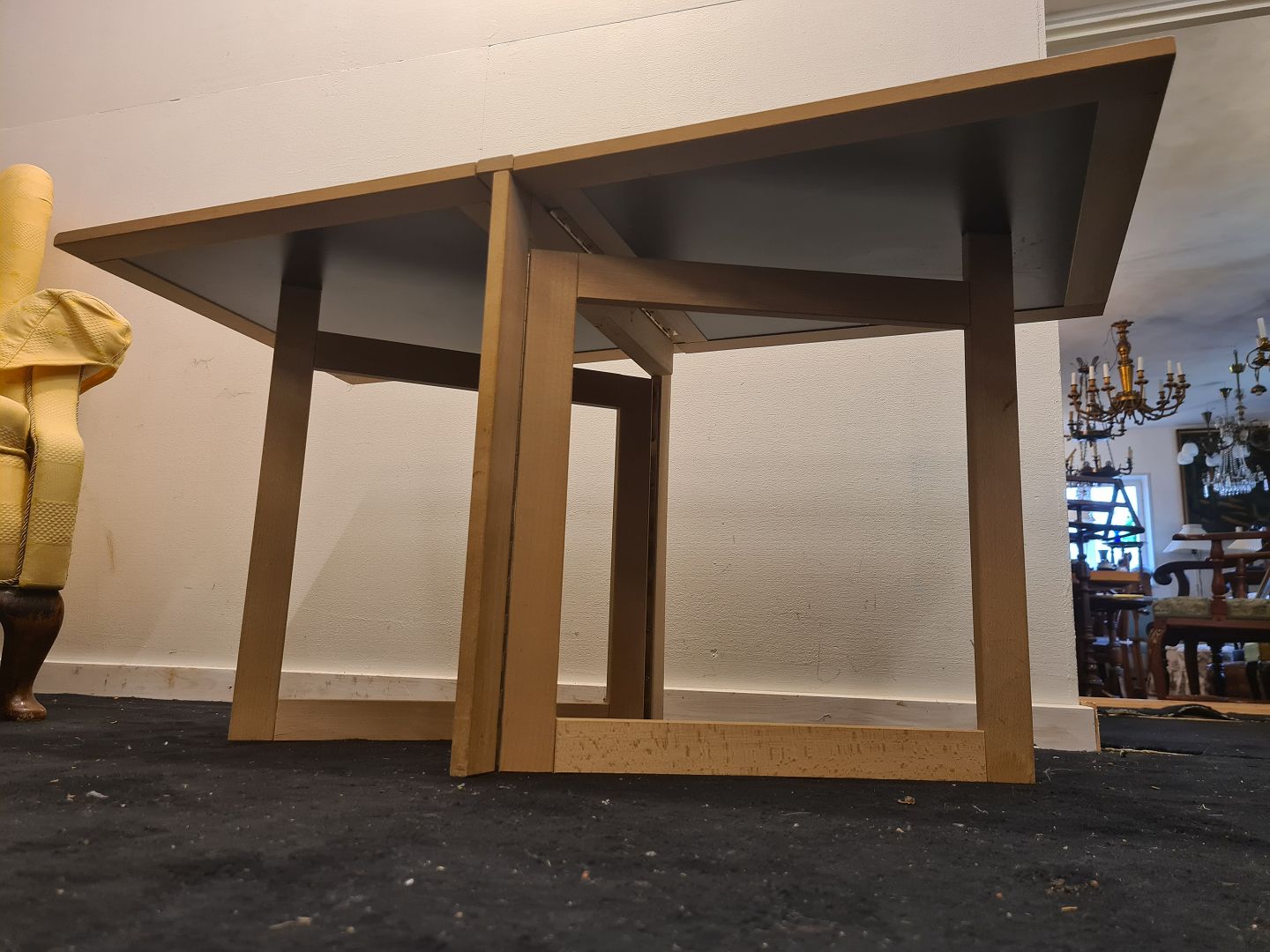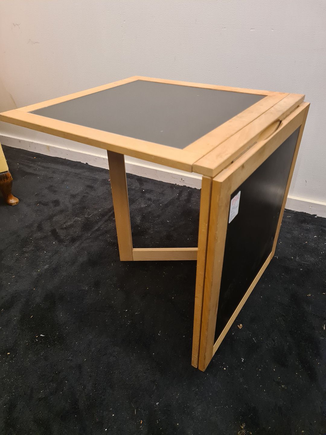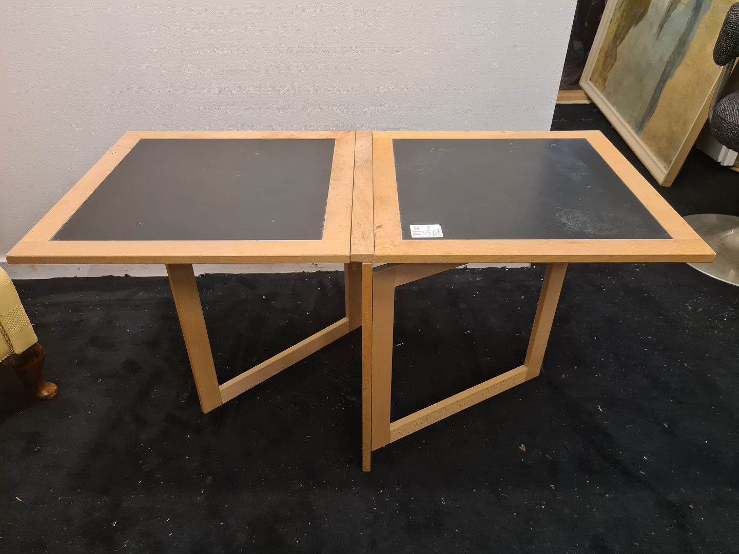 Arne Robert klap sofabord i bøg med plader i sort laminat. Produceret af Woodwing ca. 1980'erne Fremstår i brugt stand. Mål: H. 52 cm. B. sammenfoldet/udslået 7 cm. og 51 cm. L. 104 cm. Emne nummer: 80703