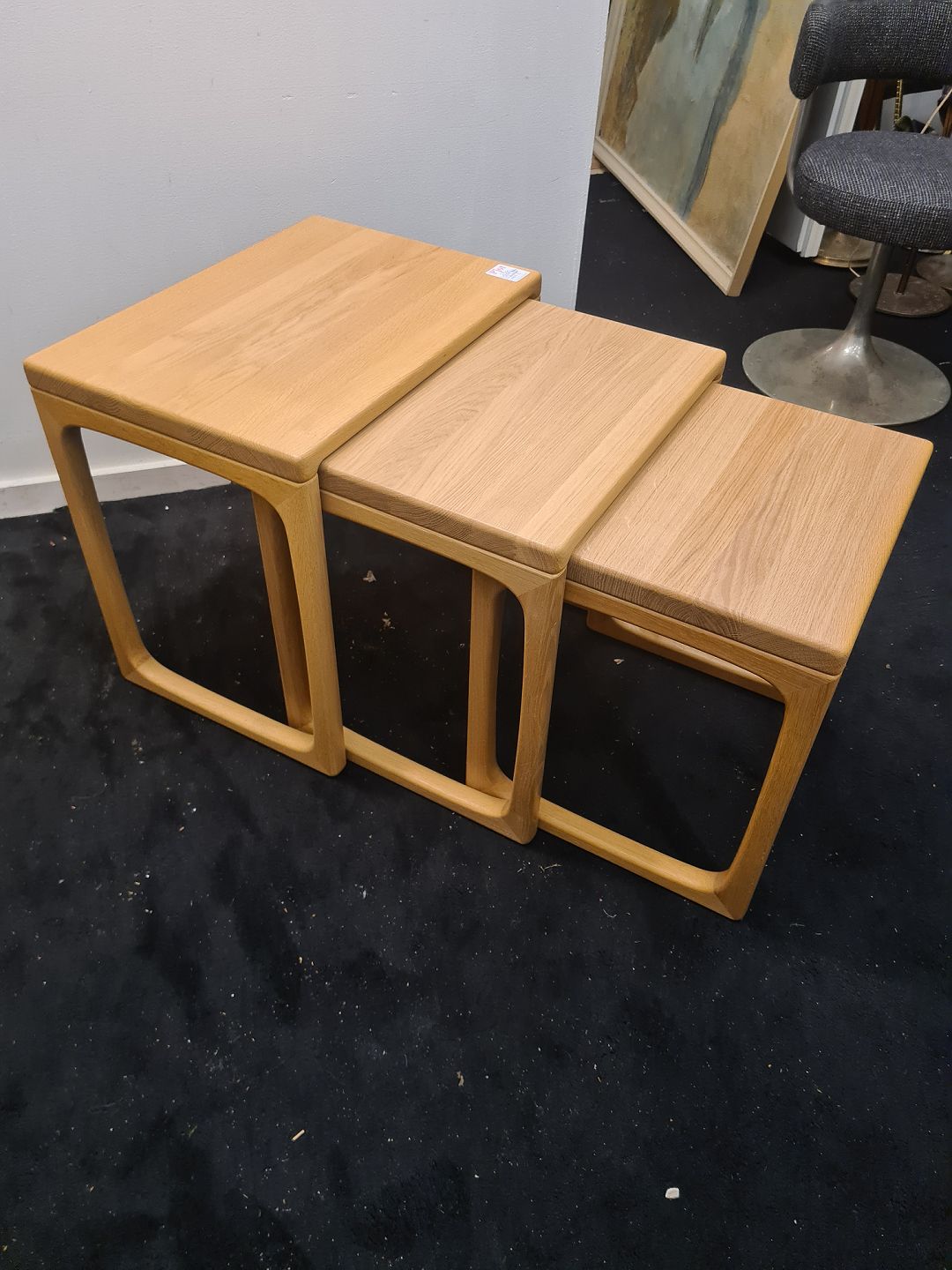 Indskudsborde i massiv egetræ produceret af Gledsted Møbelfabrik ca. år 2000.