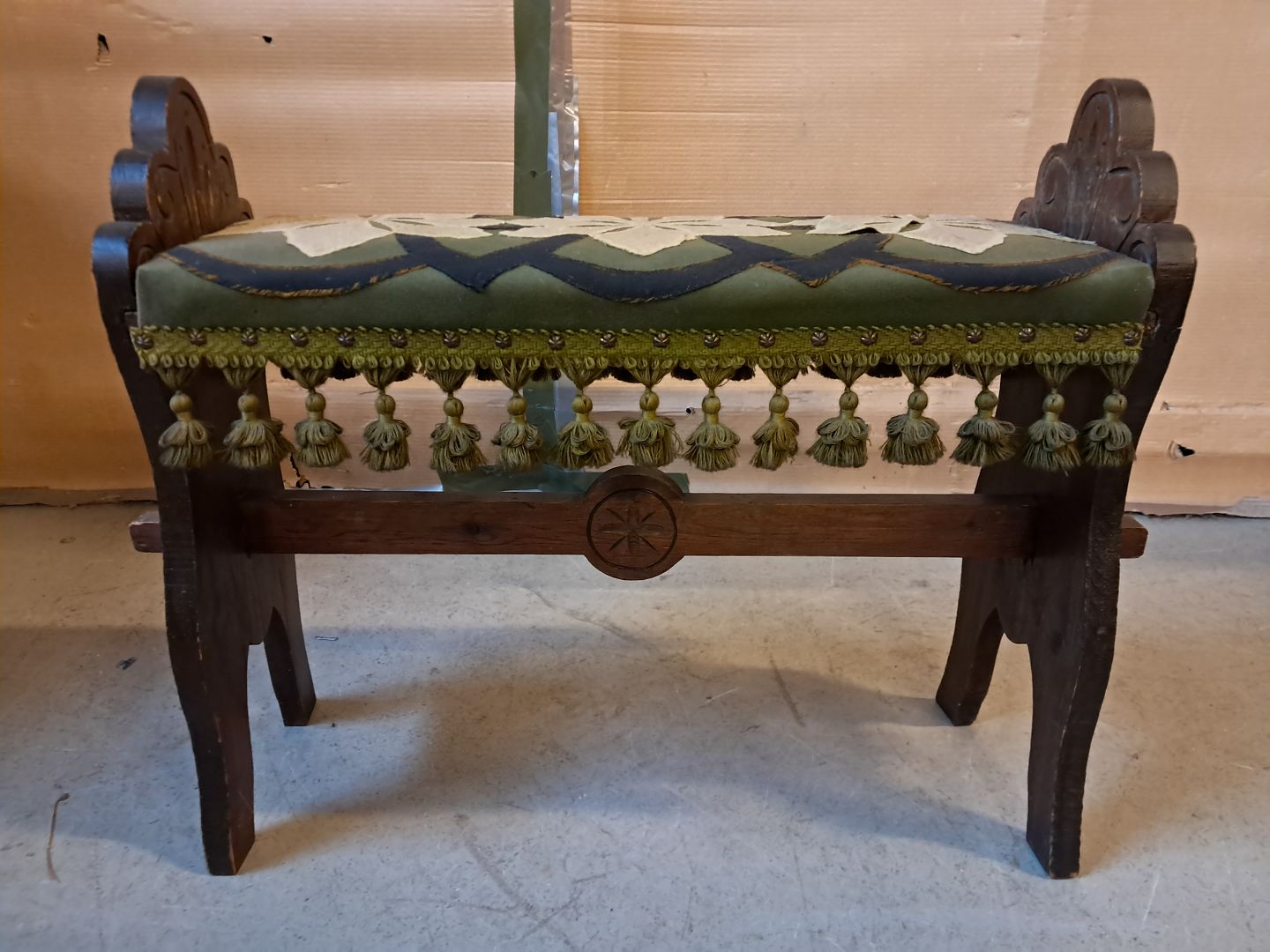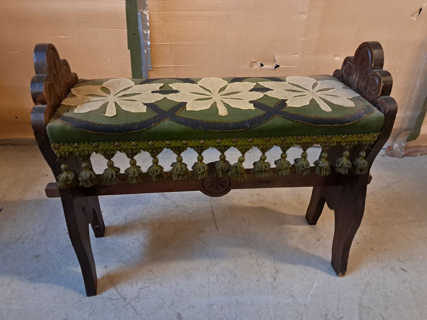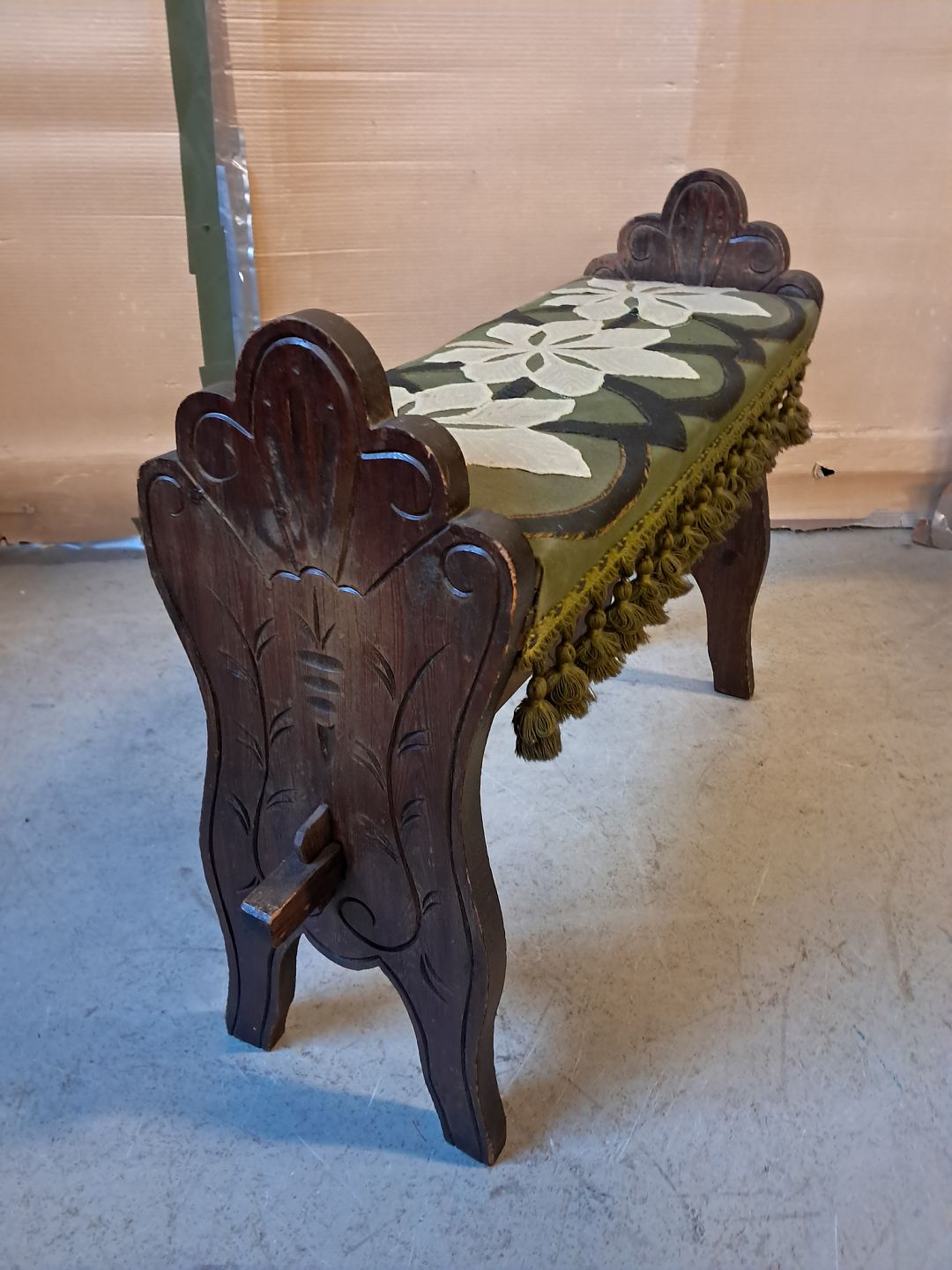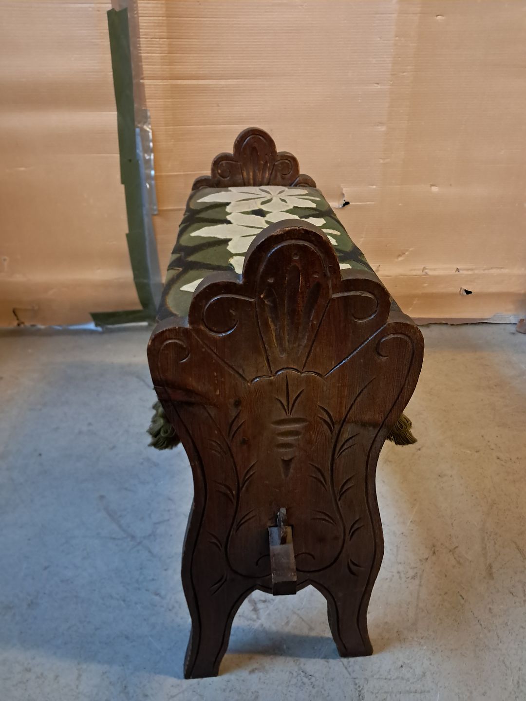 Lille bænk i massivt fyrretræ, fra 1900erne. Den har brugsspor og rokker en lille smule. Højde 58cm Bredde 68cm Dybde 26cm Sædehøjde 48cm Emne nummer: 76294