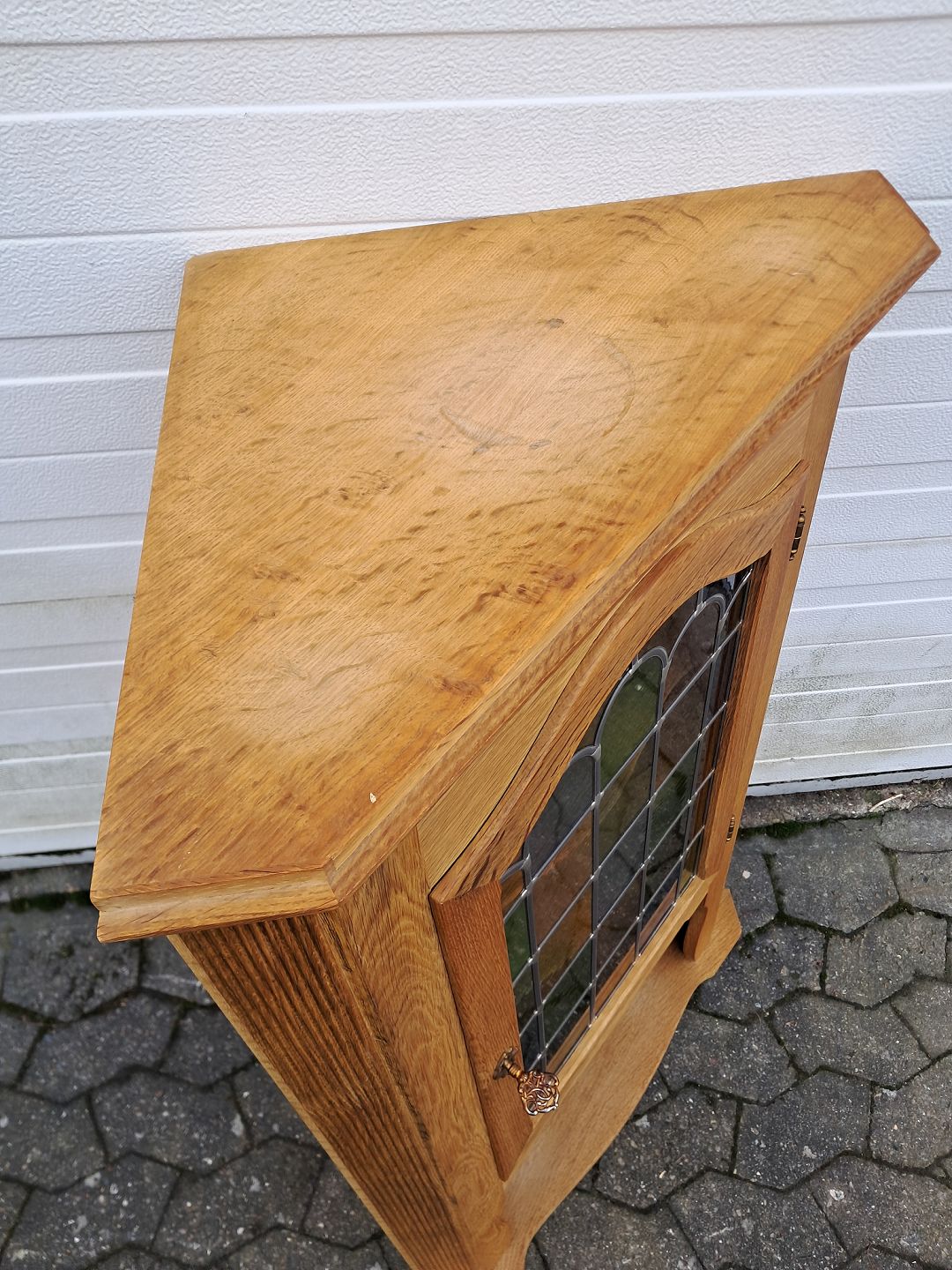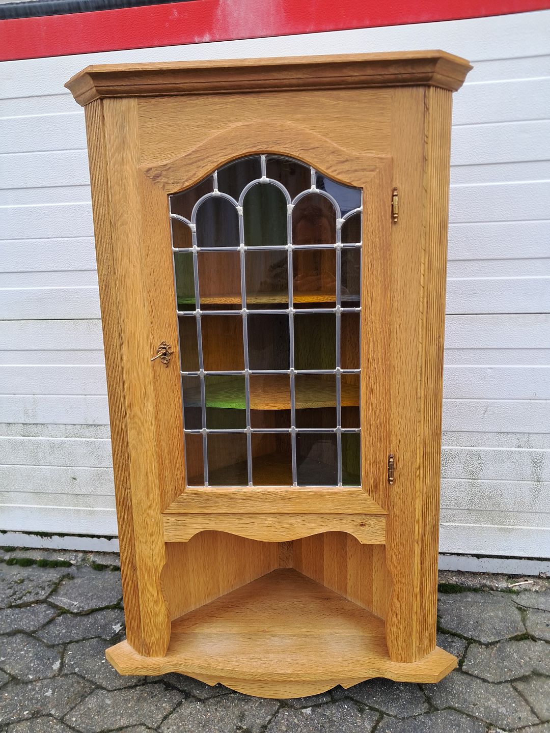 Væghjørneskab i massivt og fineret egetræ, fra 1980erne.