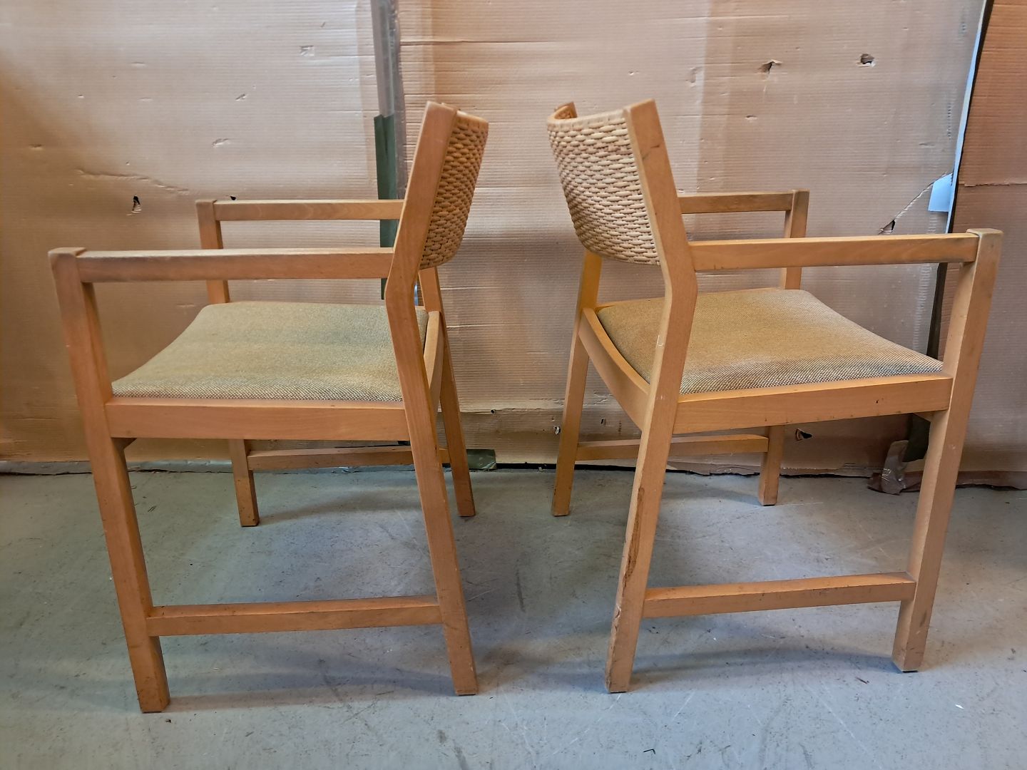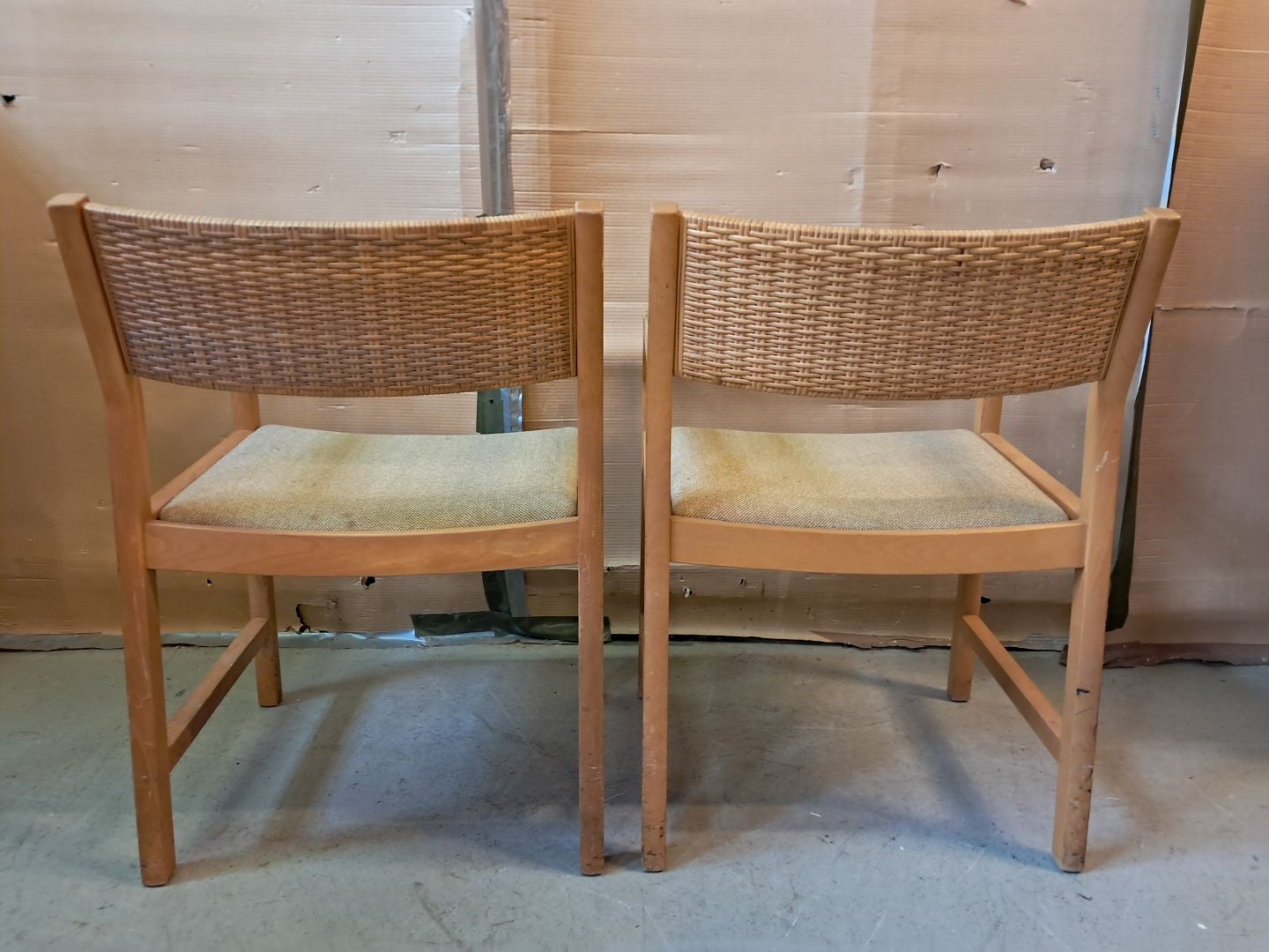 2 Stole i massivt bøgetræ, fra 1990erne. De har brugsspor. Ryghøjde 80cm Sædehøjde 45cm Emne nummer: 76395