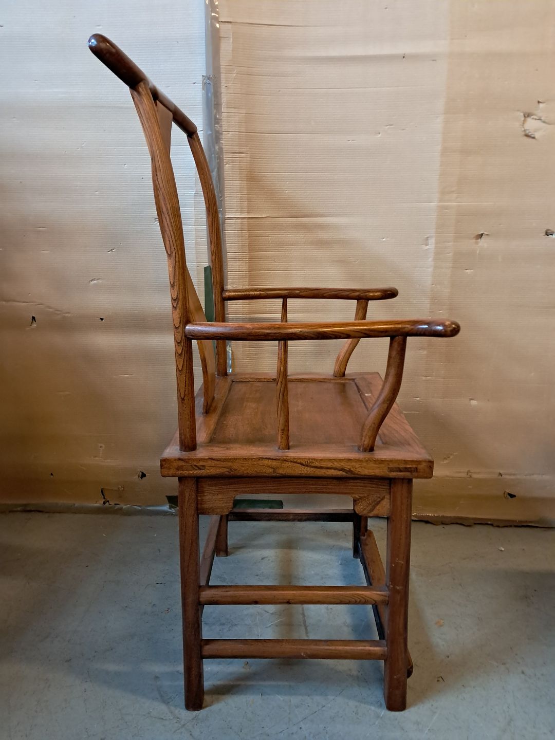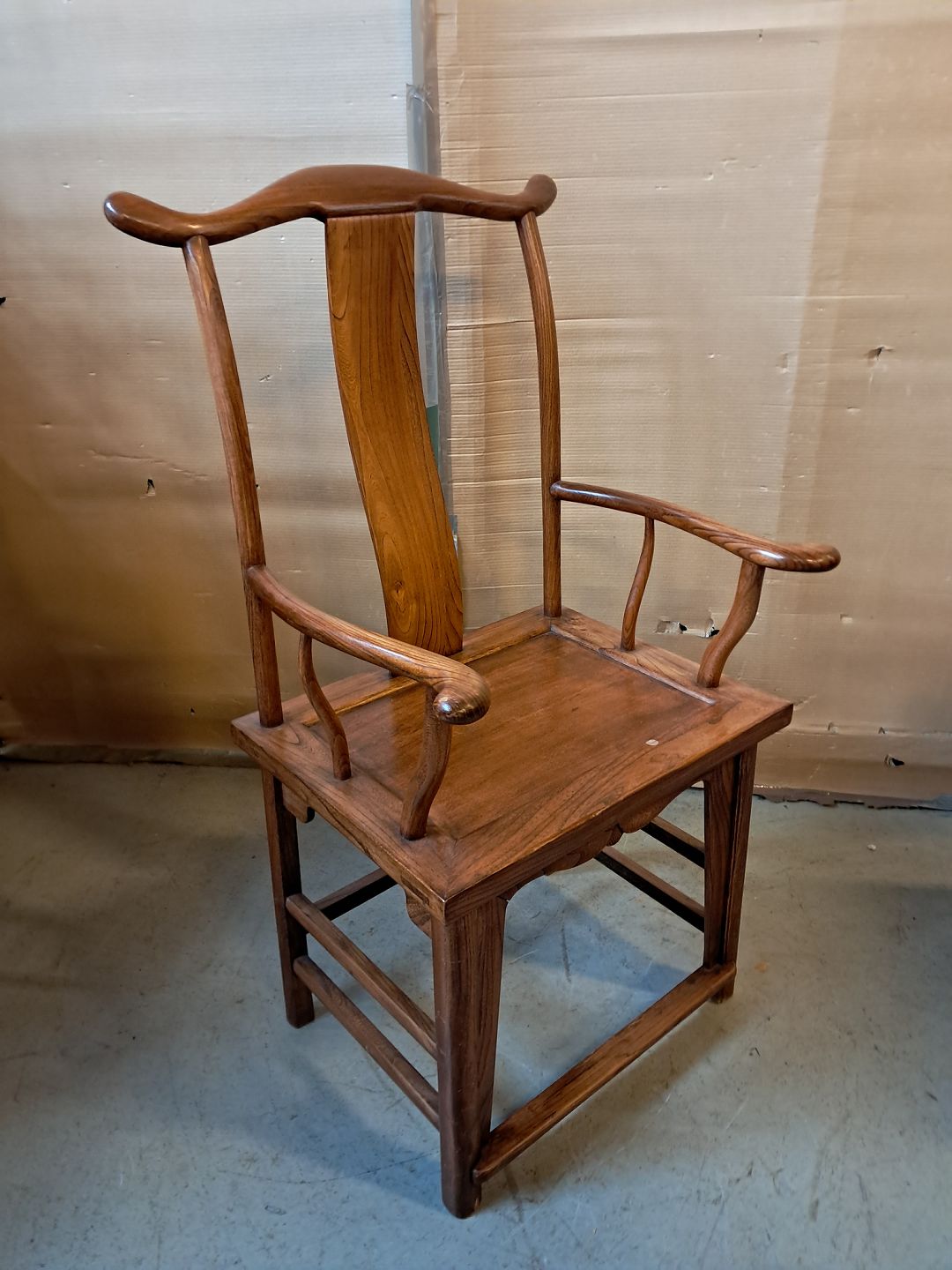 Kinesisk stol i massivt træ, fra 1990erne. Den har små brugsspor. Ryghøjde 118cm Sædehøjde 52cm Emne nummer: 76425