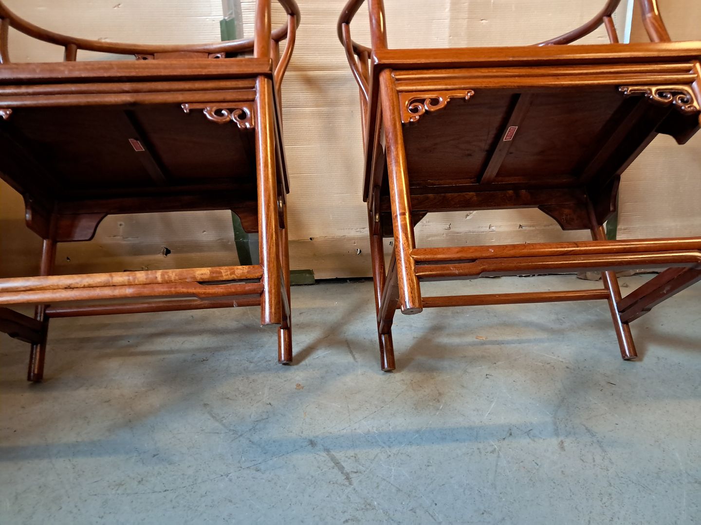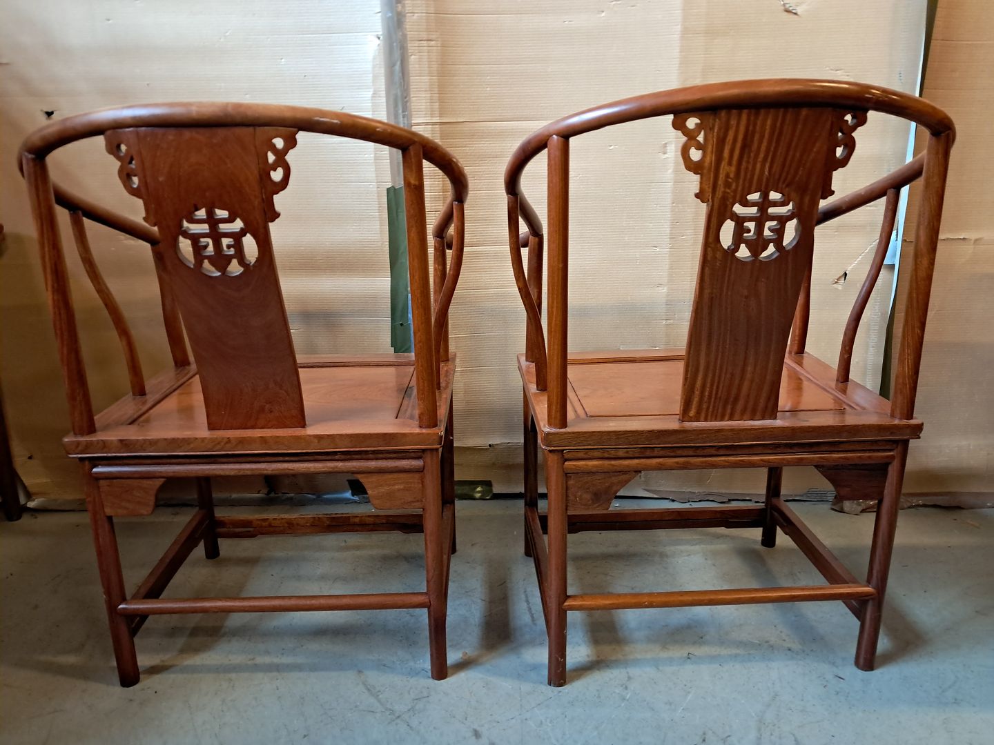 2 Kinesiske stole i massivt træ, fra 1990erne.