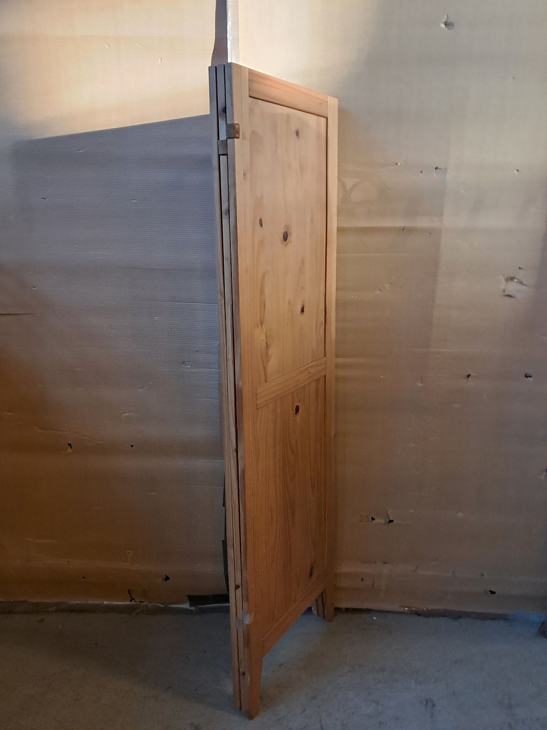 Skærm i massivt fyrretræ, fra 1990erne. Den har brugsspor. Højde 170cm Bredde 50cm Total bredde 150cm Emne nummer: 76457