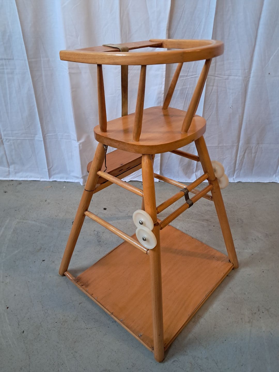 Barnestol i massivt bøgetræ, fra 1950erne. Den har brugsspor og skal limes. Ryghøjde 80cm Sædehøjde 60cm Emne nummer: 76521