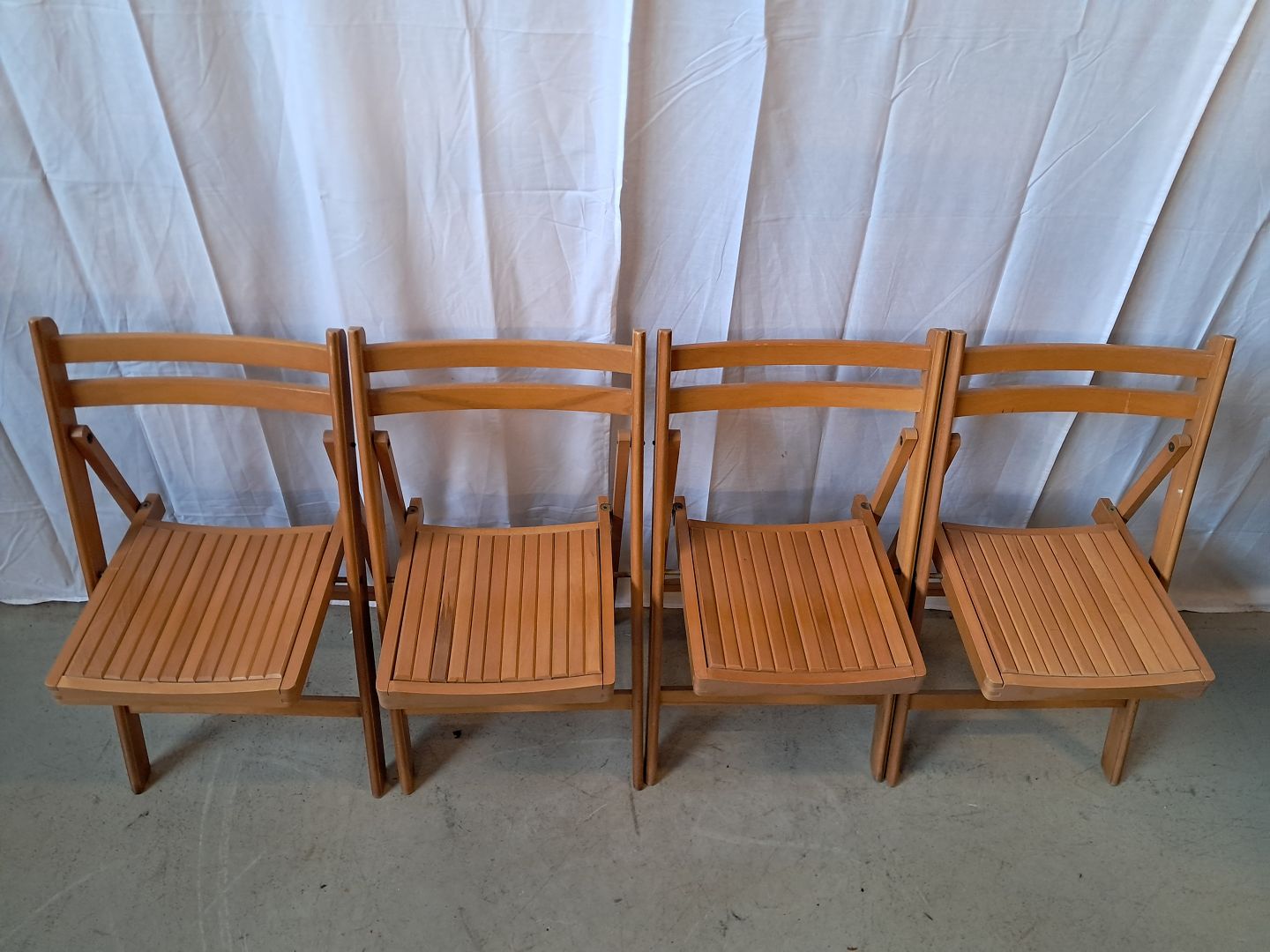 4 Klapstole i massivt bøgetræ, fra 1960erne.