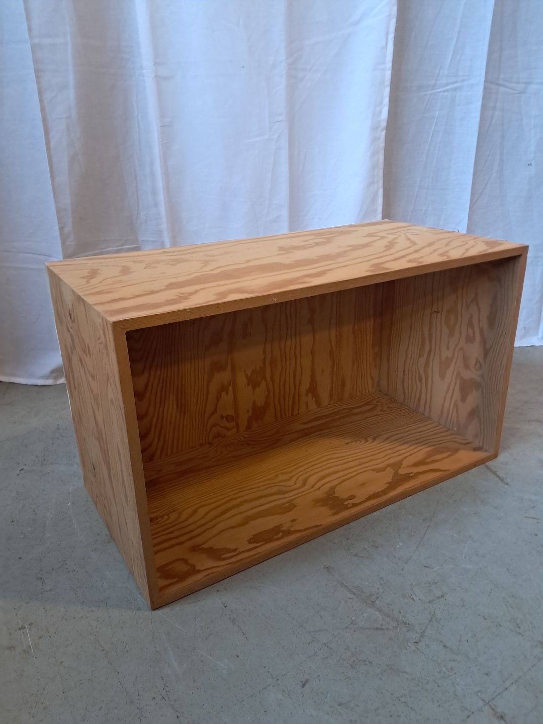Bogkasse i krydsfiner, fra 1990erne. Den har brugsspor og der medfølger ikke ophæng. Højde 35cm Bredde 60cm 30cm Emne nummer: 76540