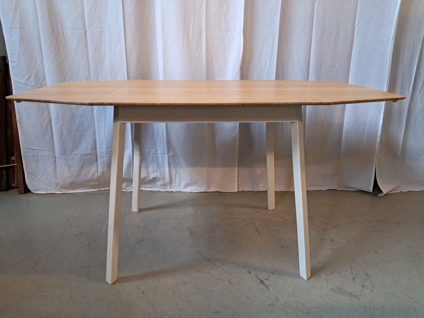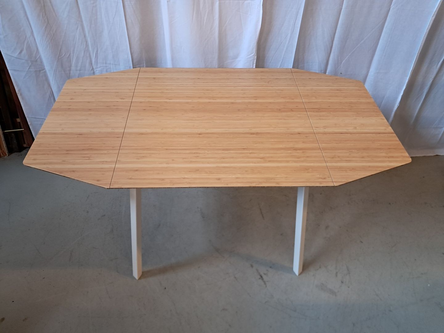 Bord med klapper i metal og bambus, fra 2010erne. Det har små brugsspor. Højde 73cm Bredde 80cm Længde 74cm Længde med klapper 138cm Emne nummer: 76543