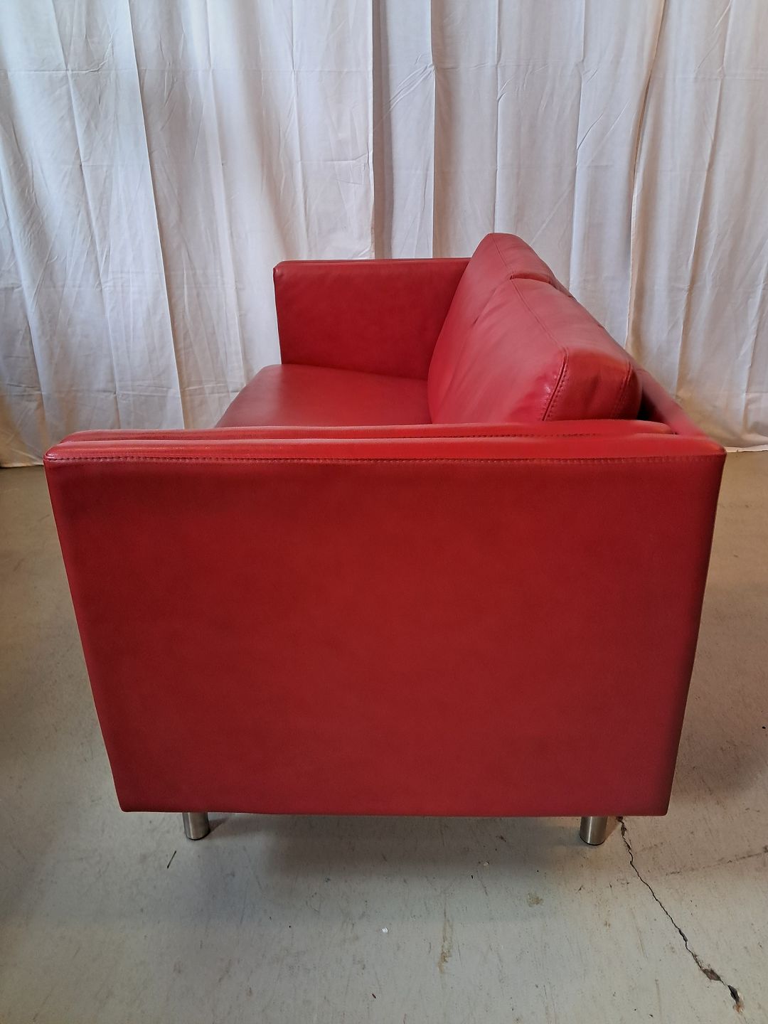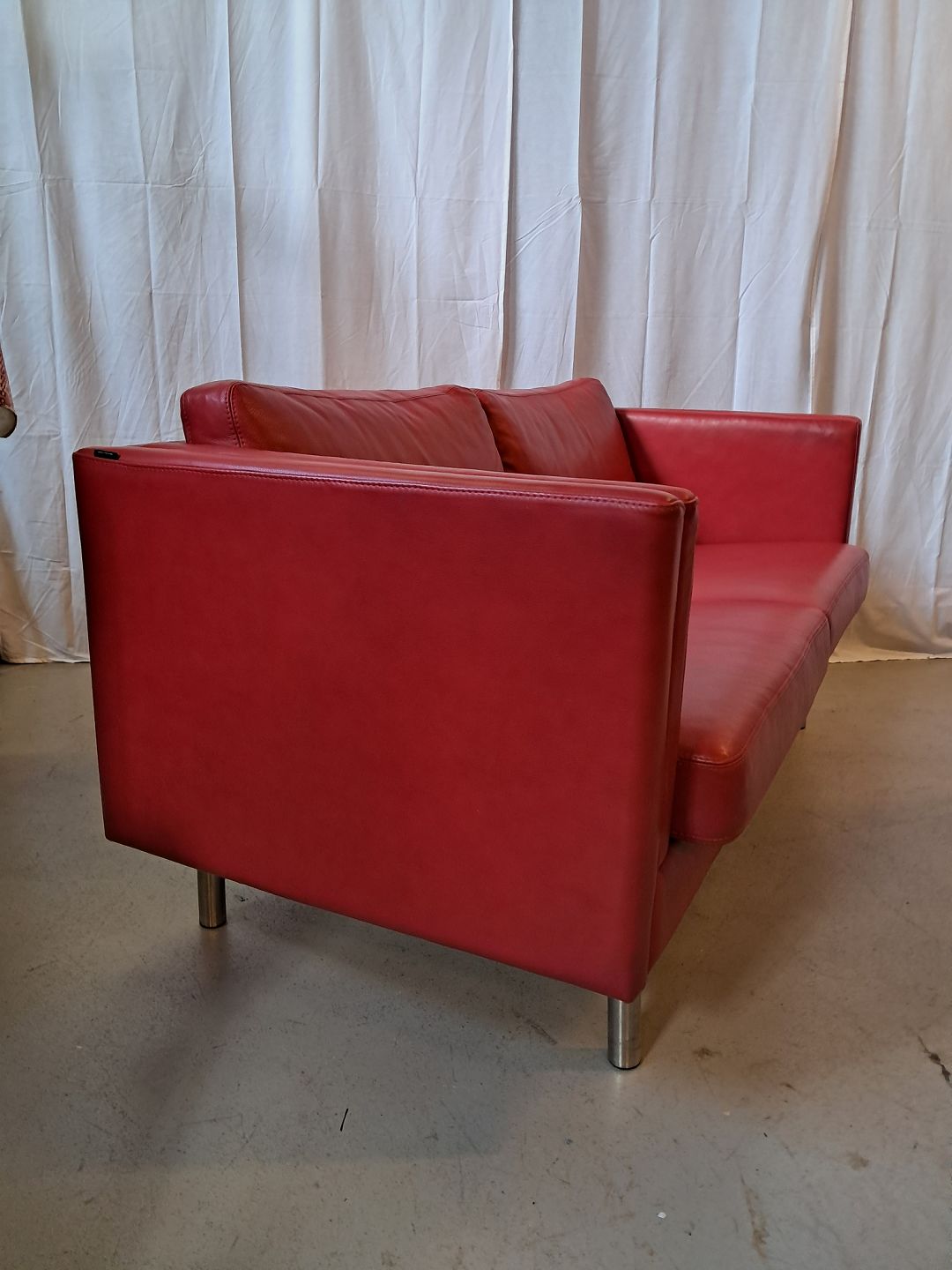 Rød lædersofa fra 2010erne. Den har brugsspor. Ryghøjde 72cm Sædehøjde 42cm Bredde 161cm Dybde 75cm Emne nummer: 76600