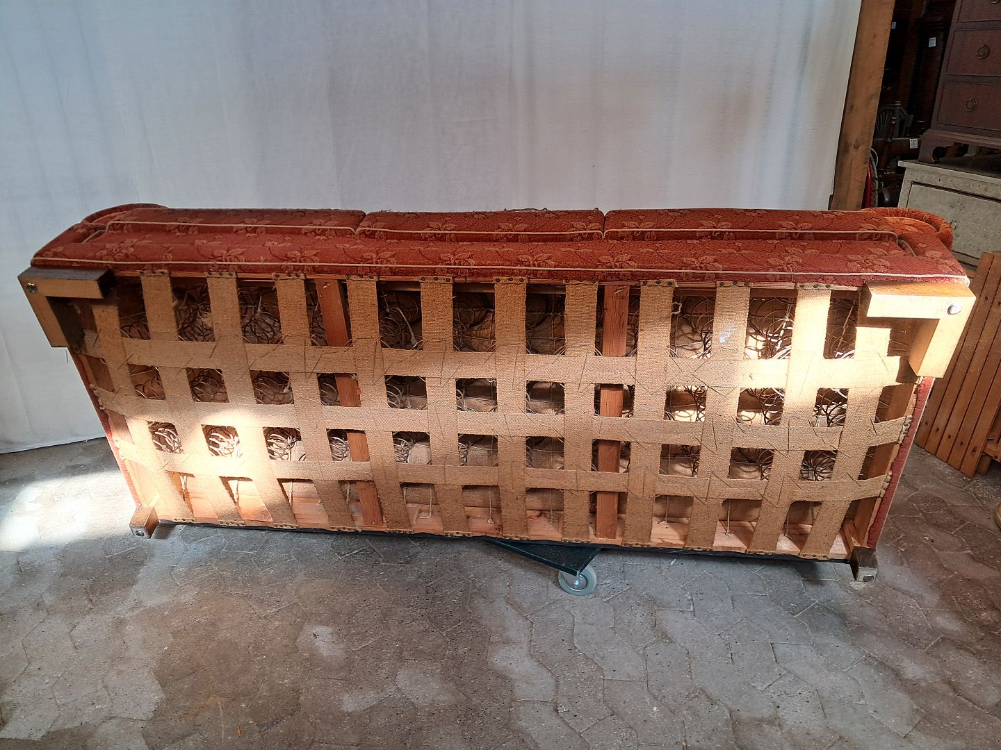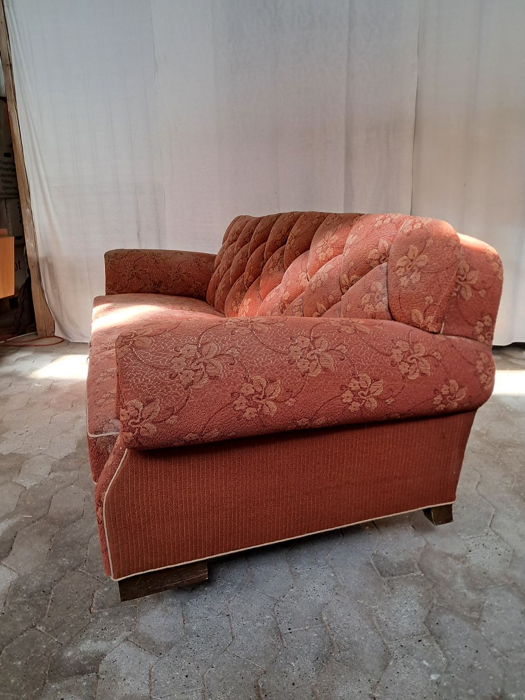 Stor sofa fra 1930erne. Den har brugsspor og betrækket er slidt. Ryghøjde 73cm Sædehøjde 35cm Bredde 223cm Dybde 88cm Emne nummer: 91492