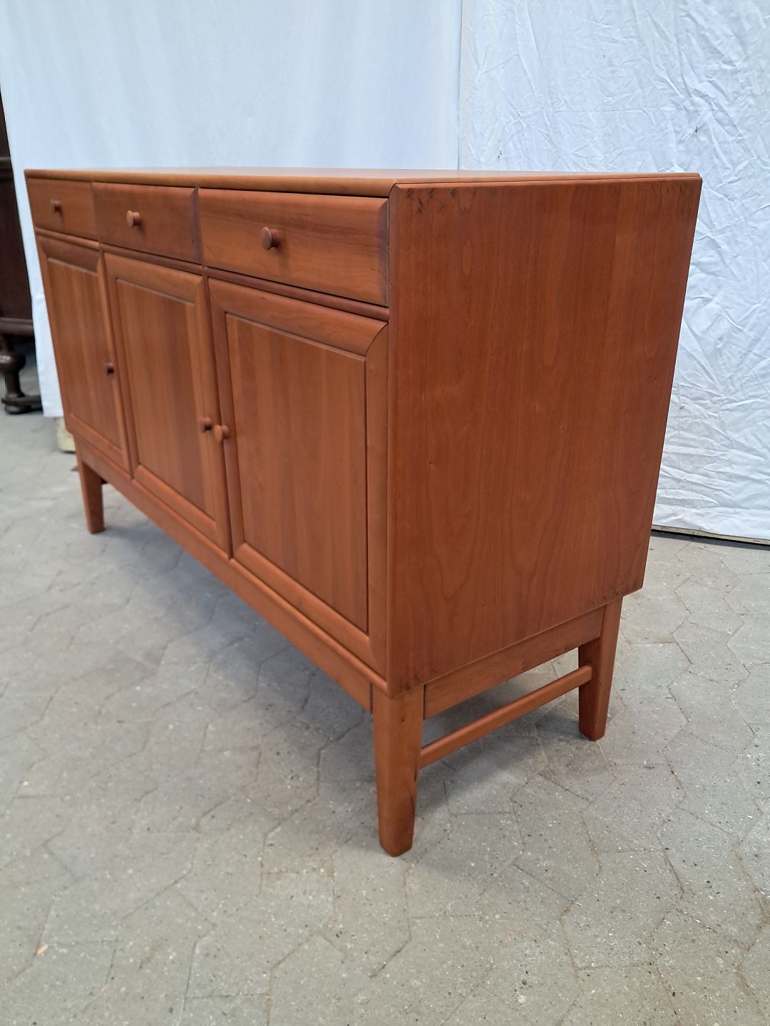 Skænk i massivt kirsebær, fra 2000erne. Den har brugsspor. Højde 87cm Bredde 136cm Dybde 48cm Se emne nr. 91533 og 91534 Emne nummer: 91528