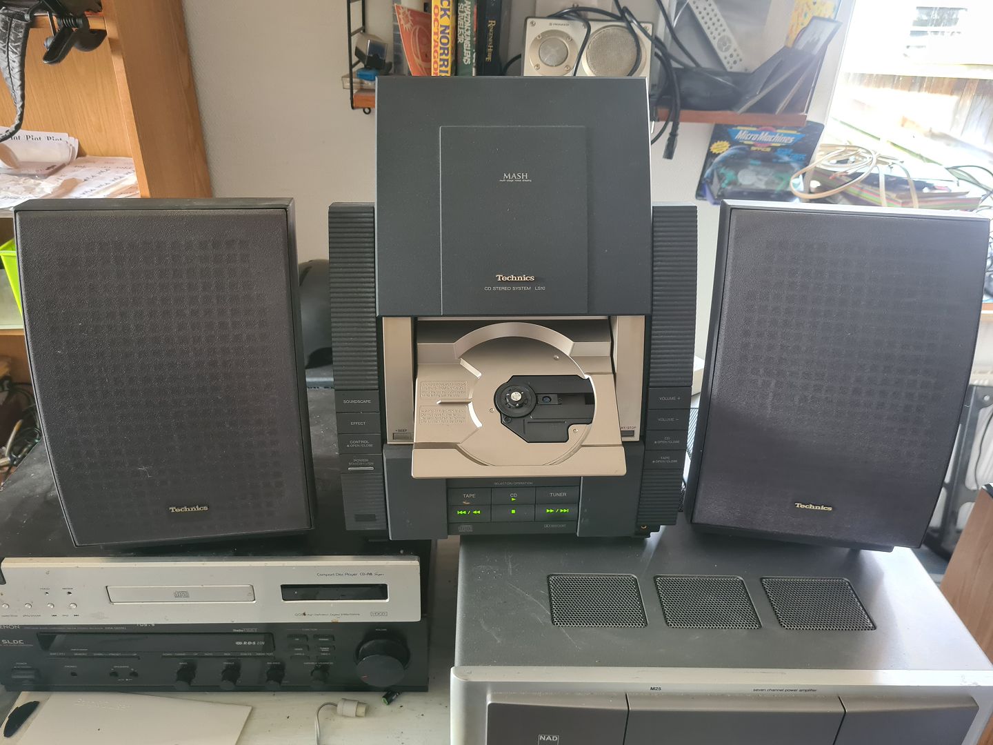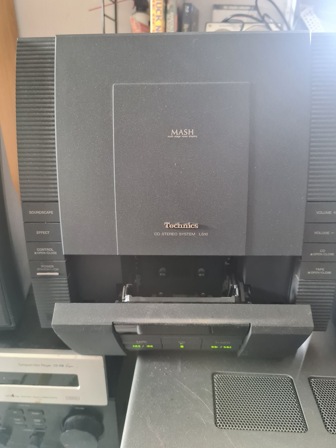 Technics CD system LS10 med højtalerpar SB-LS10. Testet, virker fint og lyder godt. Ingen problemer med hverken cd afspiller eller kassettebånds afspiller. NB. Ingen fjernbetjening. Emne nummer: 60640