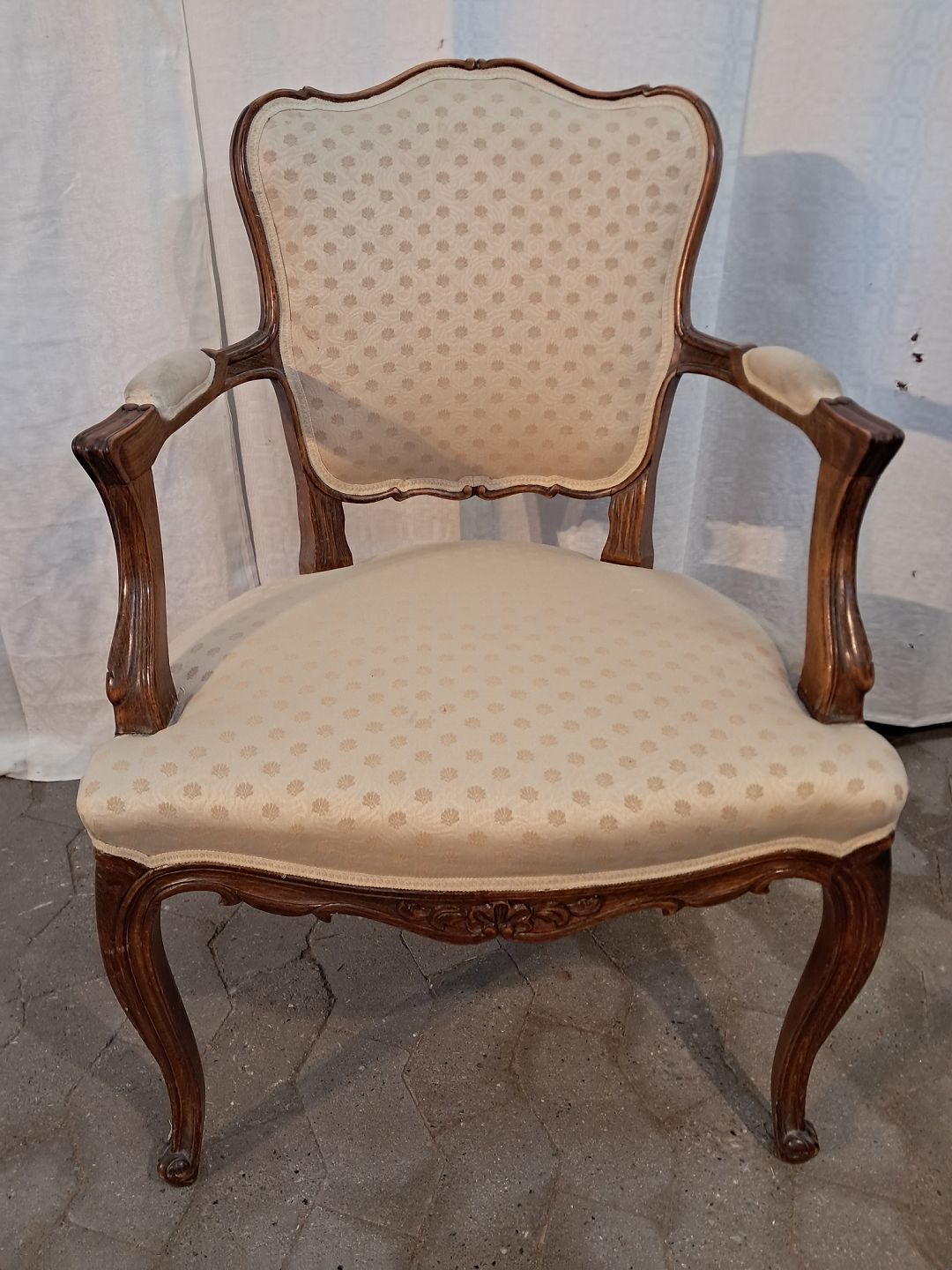 Rokokostol i massivt bøgetræ, fra 1950erne. Den har små brugsspor. Ryghøjde 89cm Sædehøjde 44cm Emne nummer: 91543