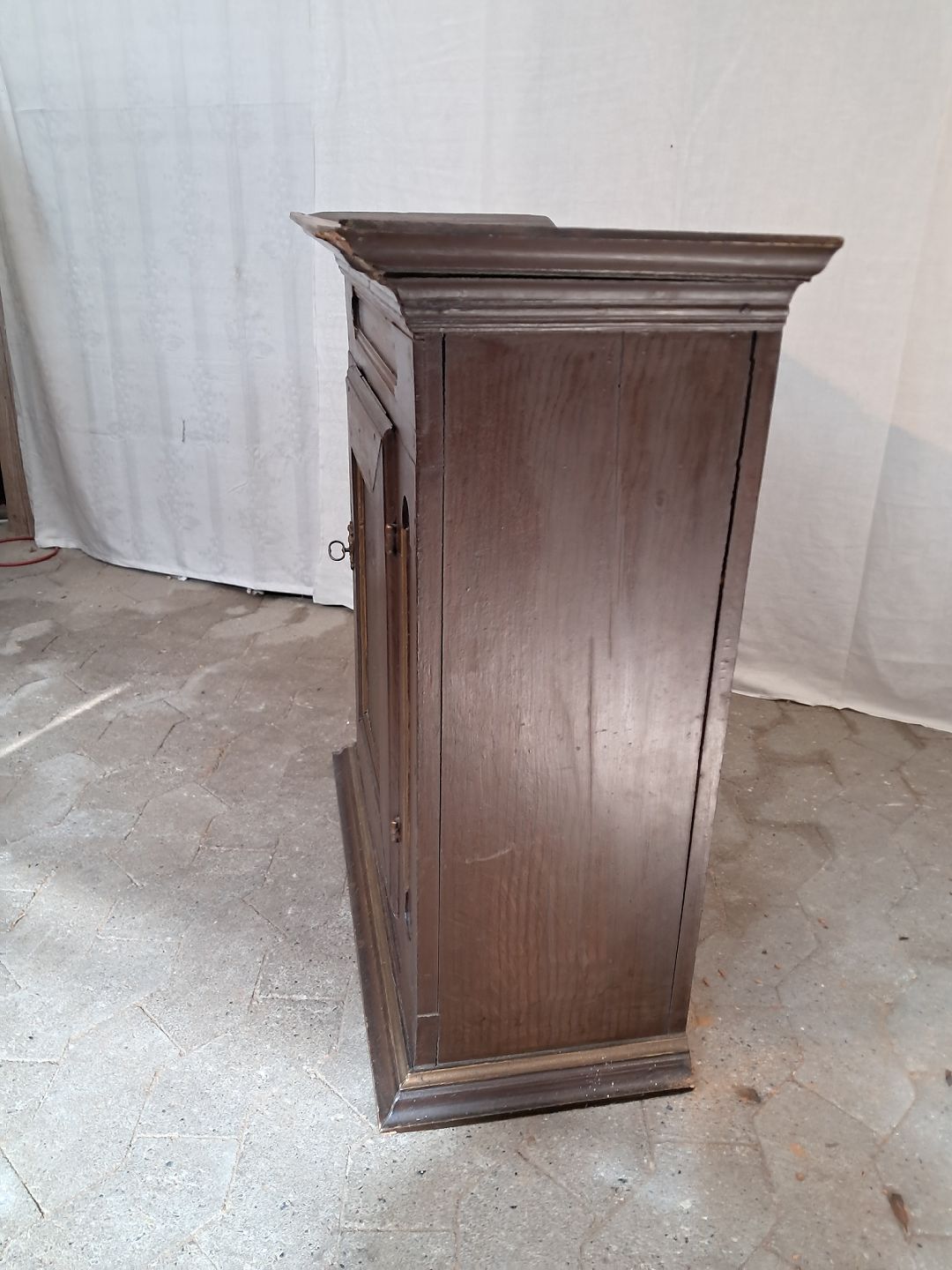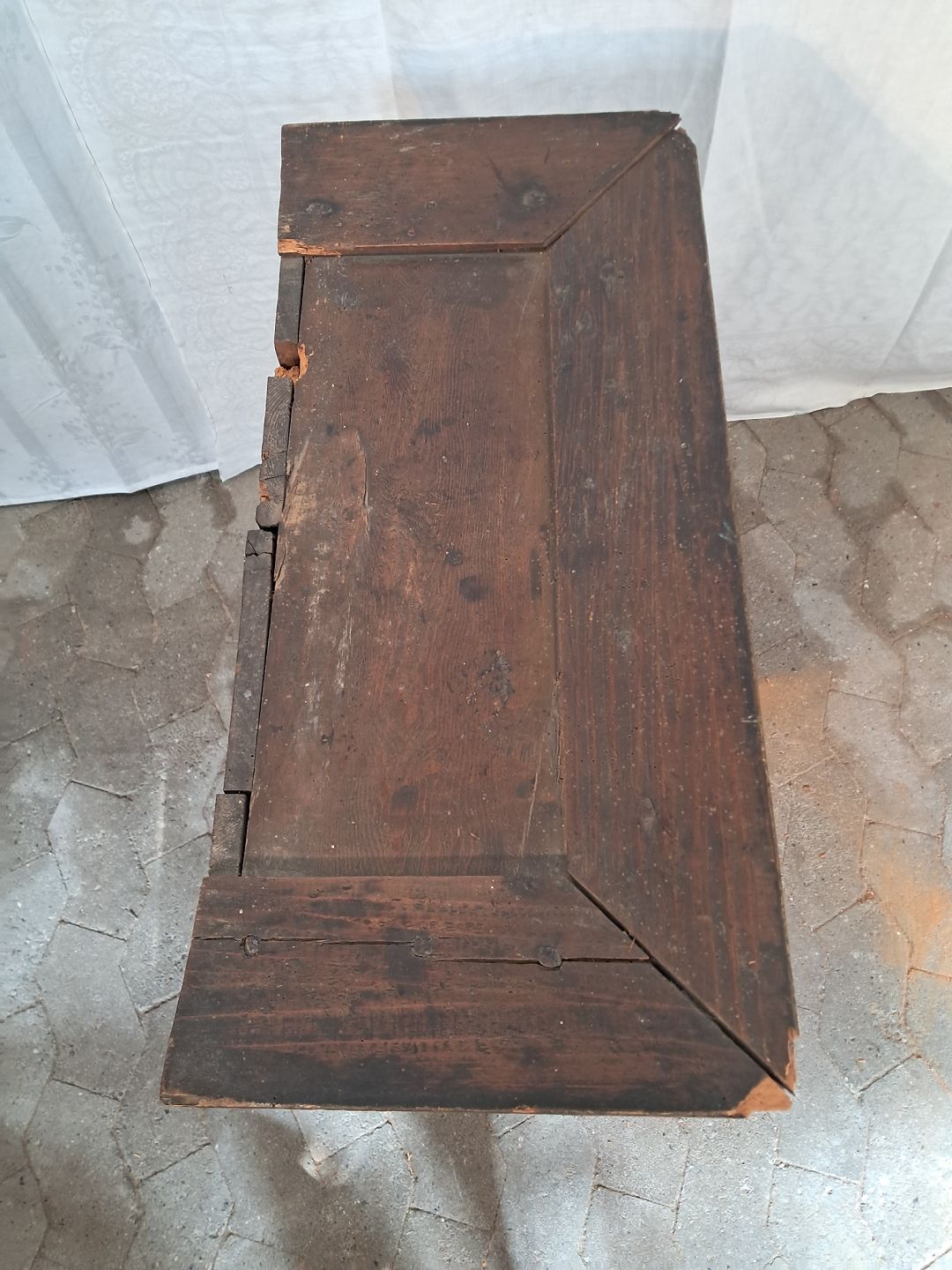 Det har brugsspor/ små defekter og det har været angrebet af træorm.