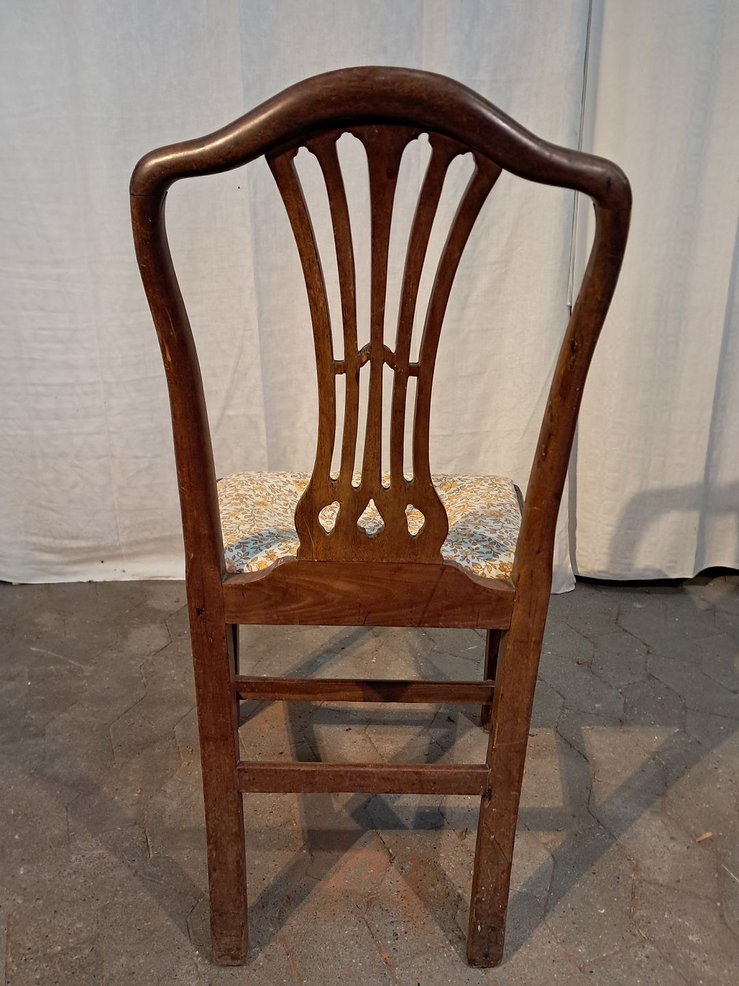 Stol i massivt egetræ, fra 1900erne. Den har brugsspor og sædet er defekt. Ryghøjde 92cm Sædehøjde 45cm Emne nummer: 91571
