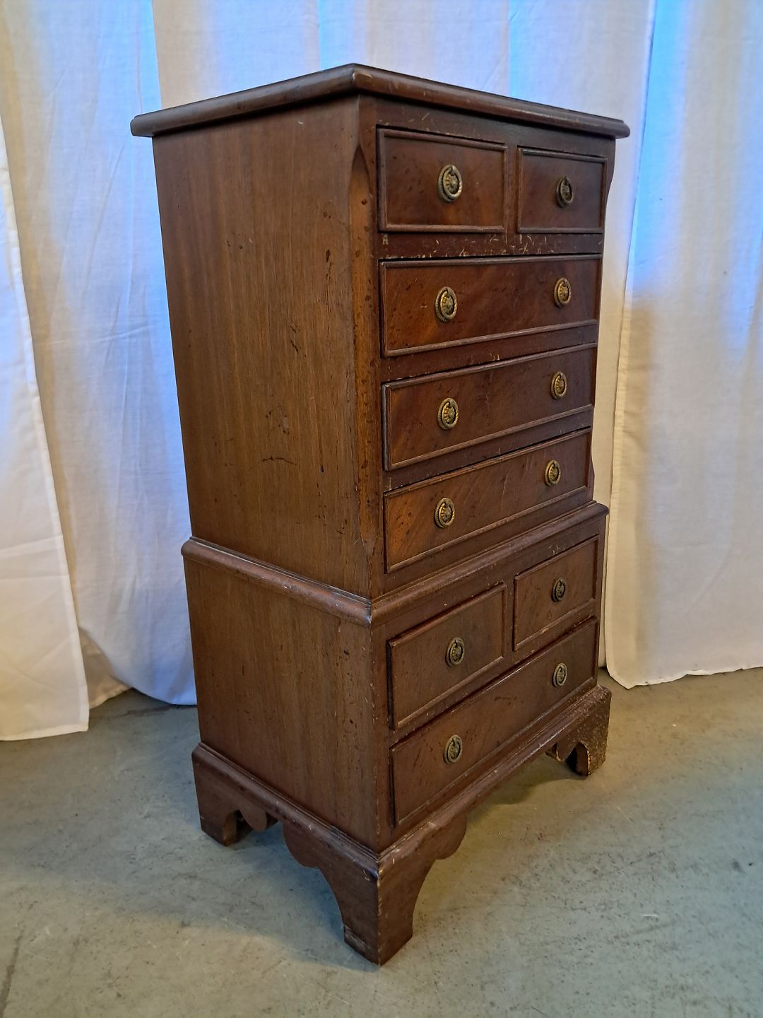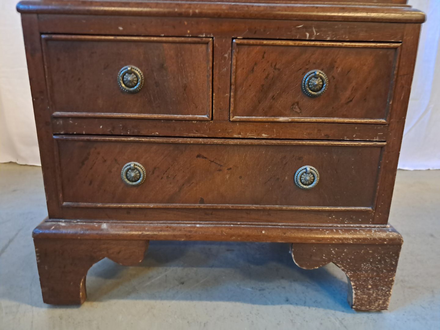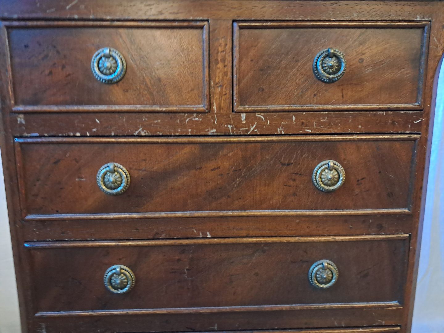 Kommode i fineret mahogni, fra 1980erne. Den har brugsspor i form af ridser. Højde 80cm Bredde 42cm Dybde 30cm Emne nummer: 76660
