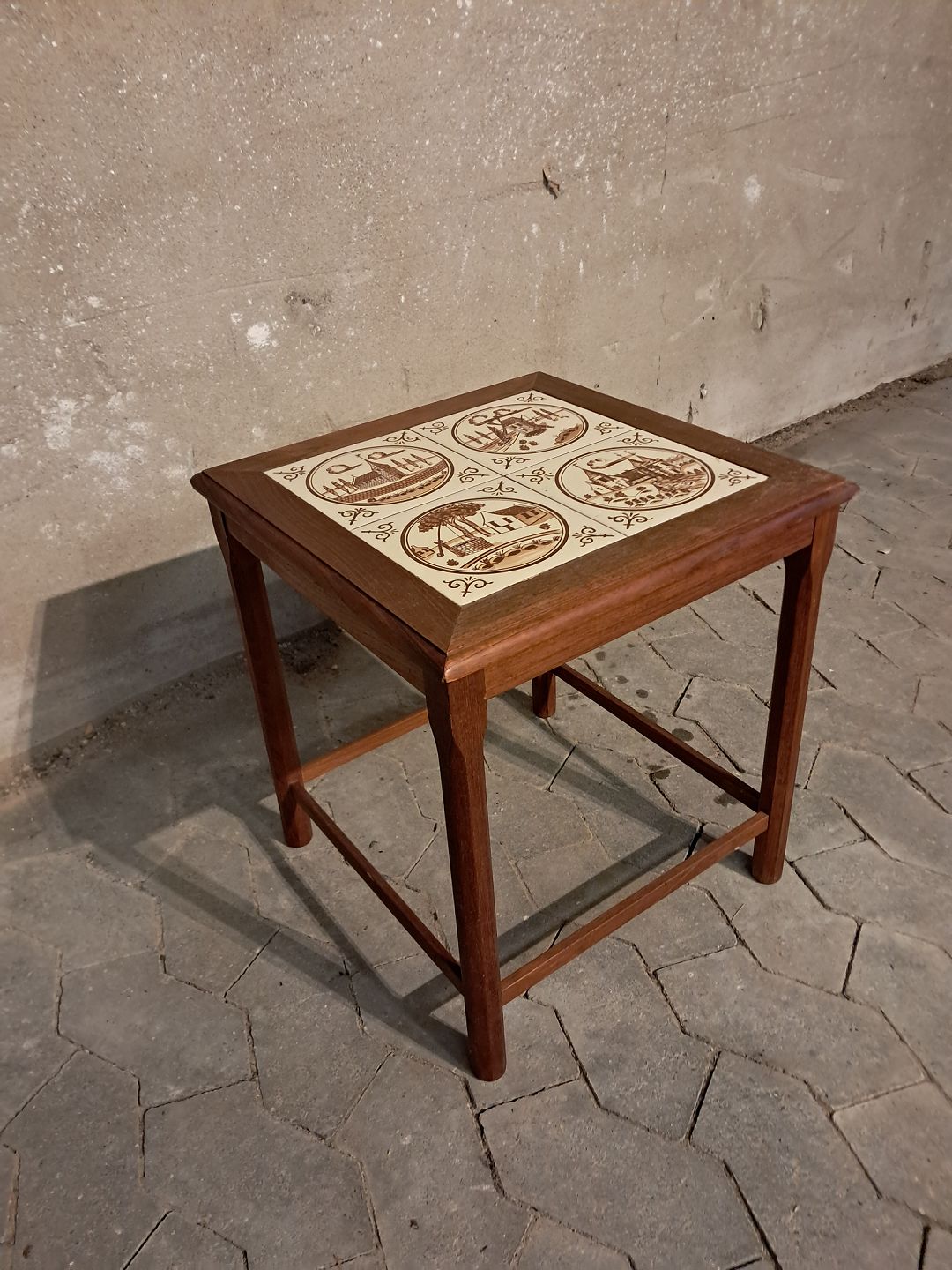 Lampebord i teaktræ med kakler, fra 1970erne. Det har brugsspor. Højde 45cm Bredde 40cm Dybde 40cm Emne nummer: 91669