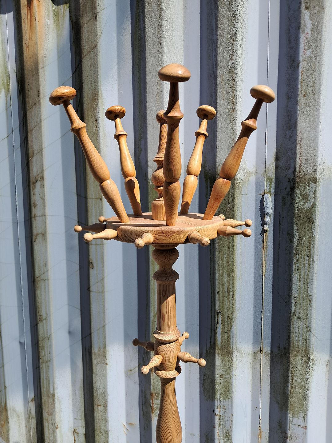 Stumtjener i massivt fyrretræ, fra 1980erne. Den har brugsspor. Højde 180cm Diameter på fod 68cm Emne nummer: 76755