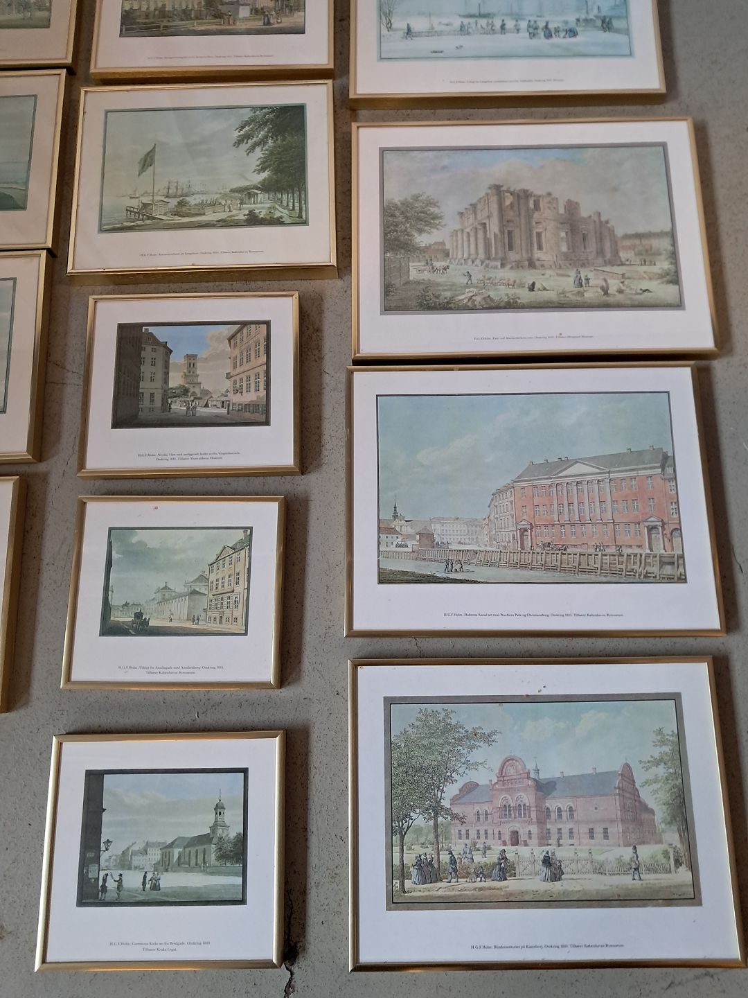 20 Stk. Billeder af H.G.F. Holm København, i aluminiumsrammer med glas,