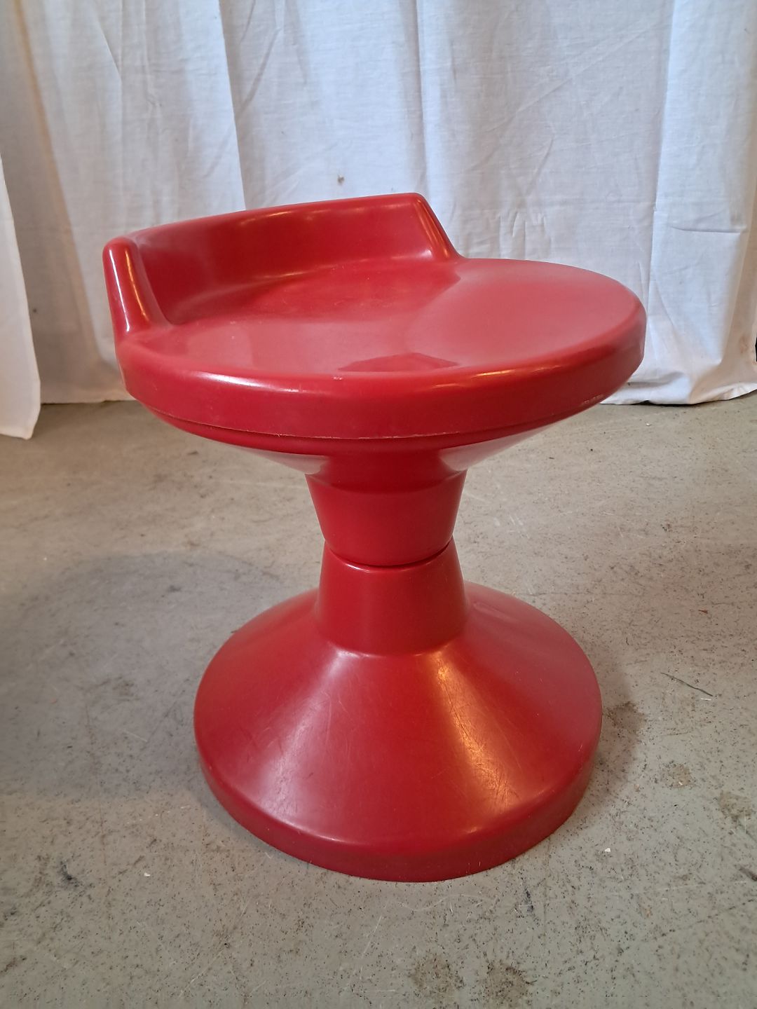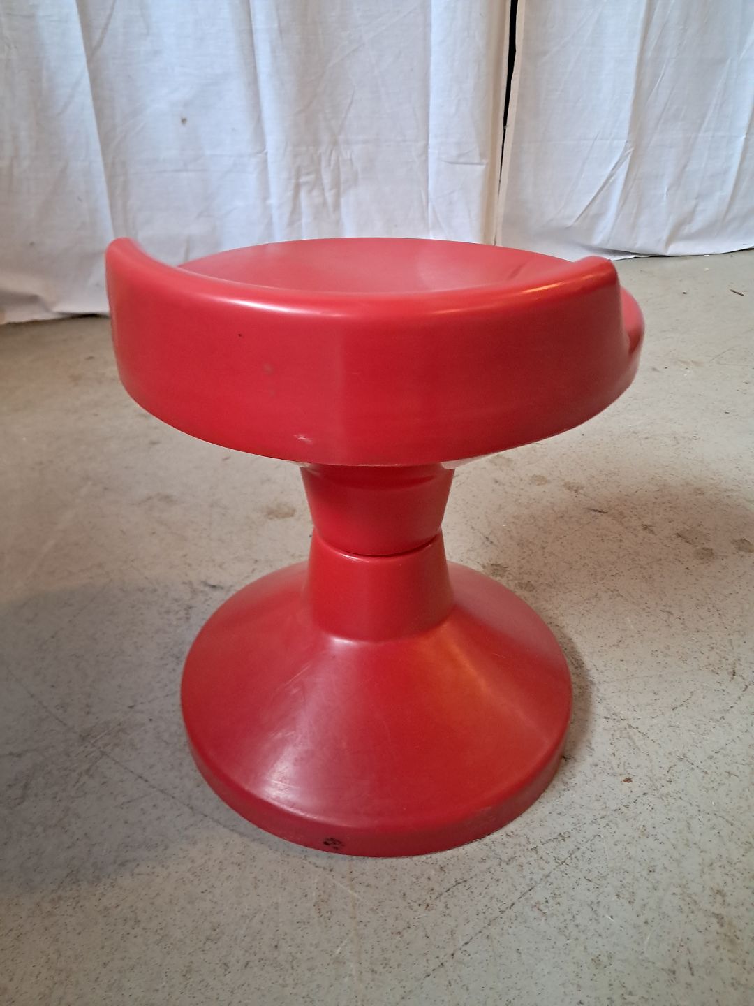 Plast skammel, made in Denmark, fra 1980erne. Den har brugsspor. Højde 26cm Diameter 24cm Emne nummer: 76844