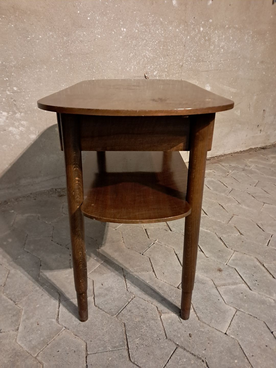 Lampebord med skuffe i fineret nødetræ, fra 1950erne.