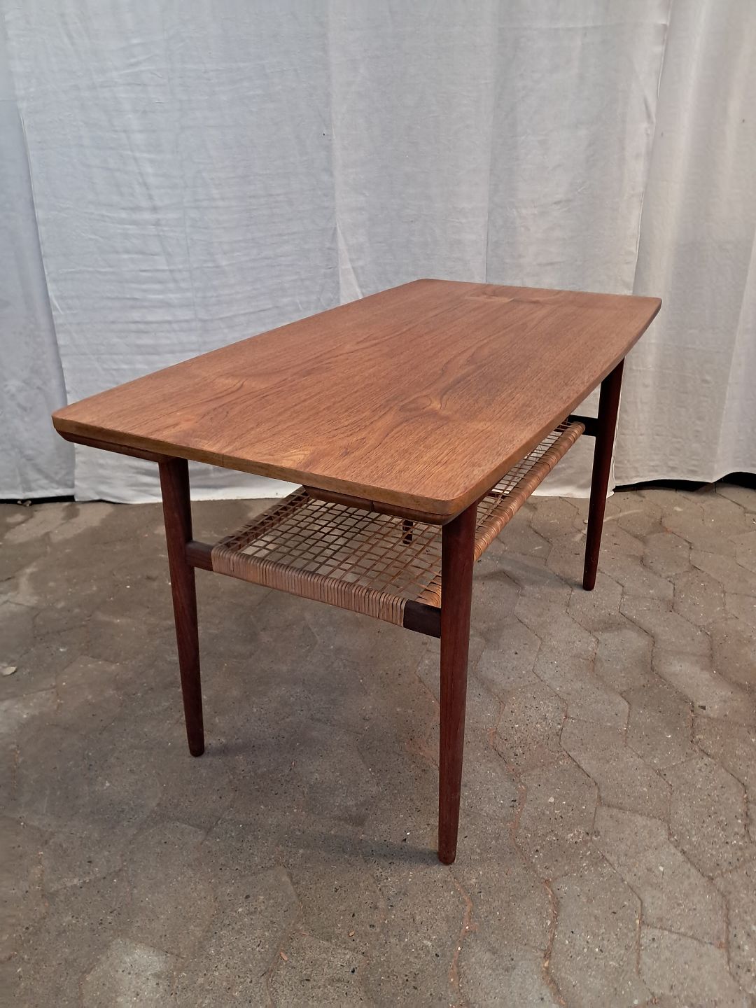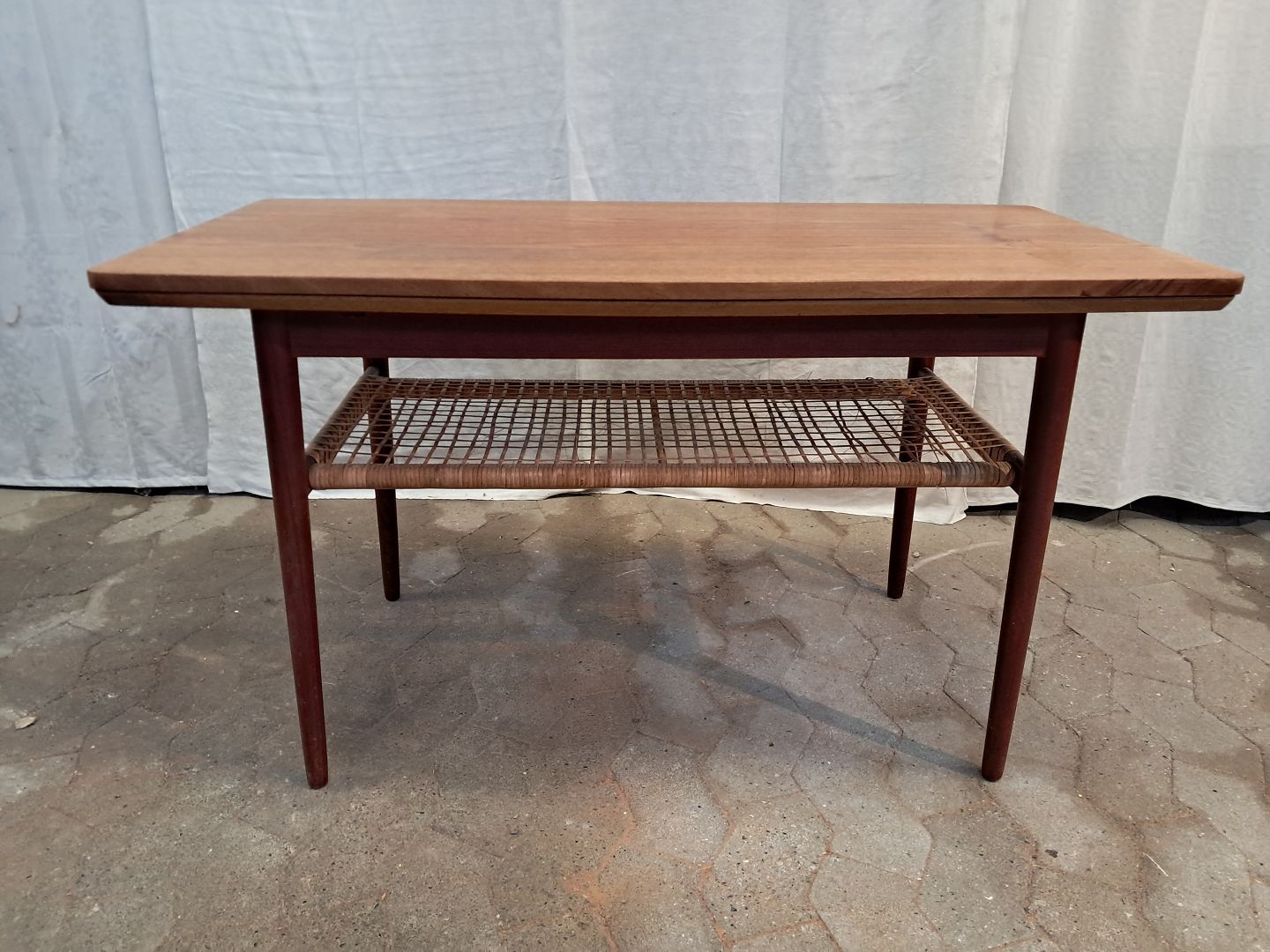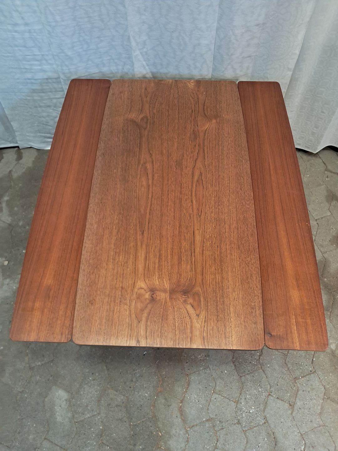 Sofabord i fineret teaktræ med hollandsk udtræk, fra 1960erne.