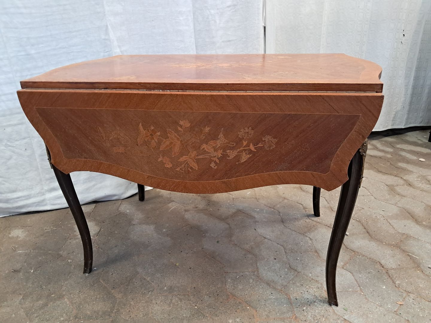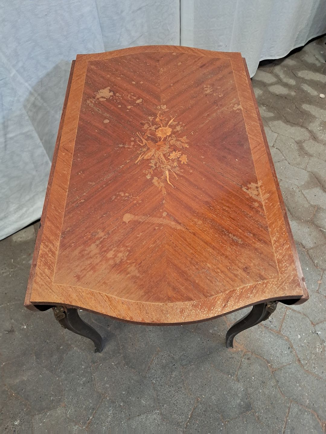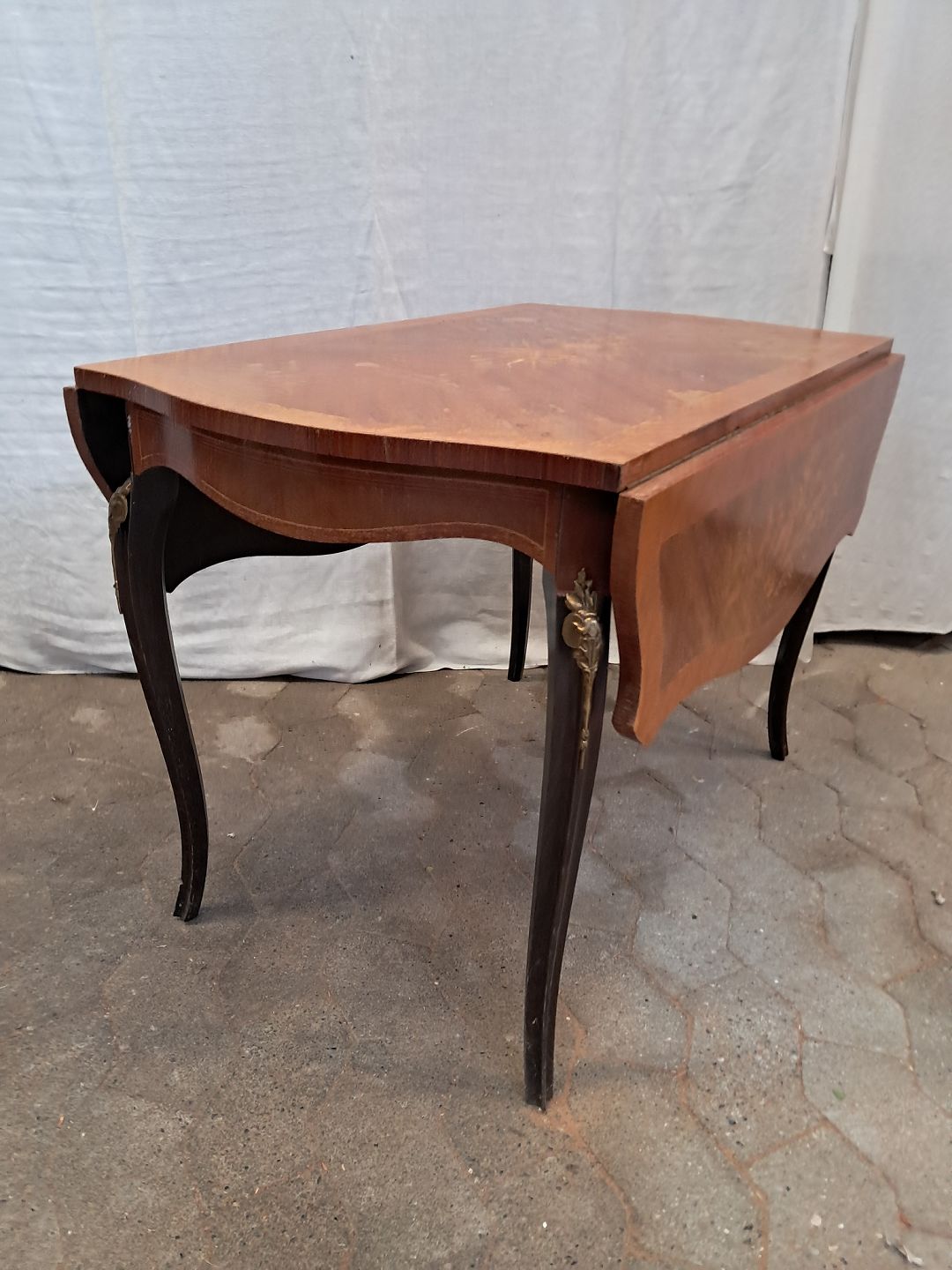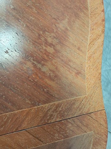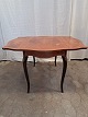 Sofabord i fineret mahogni med klapper, fra 1980erne. Det har en del brugsspor. Højde 59cm Længde 87cm Bredde 50cm Bredde med klapper 98cm Emne nummer: 91774