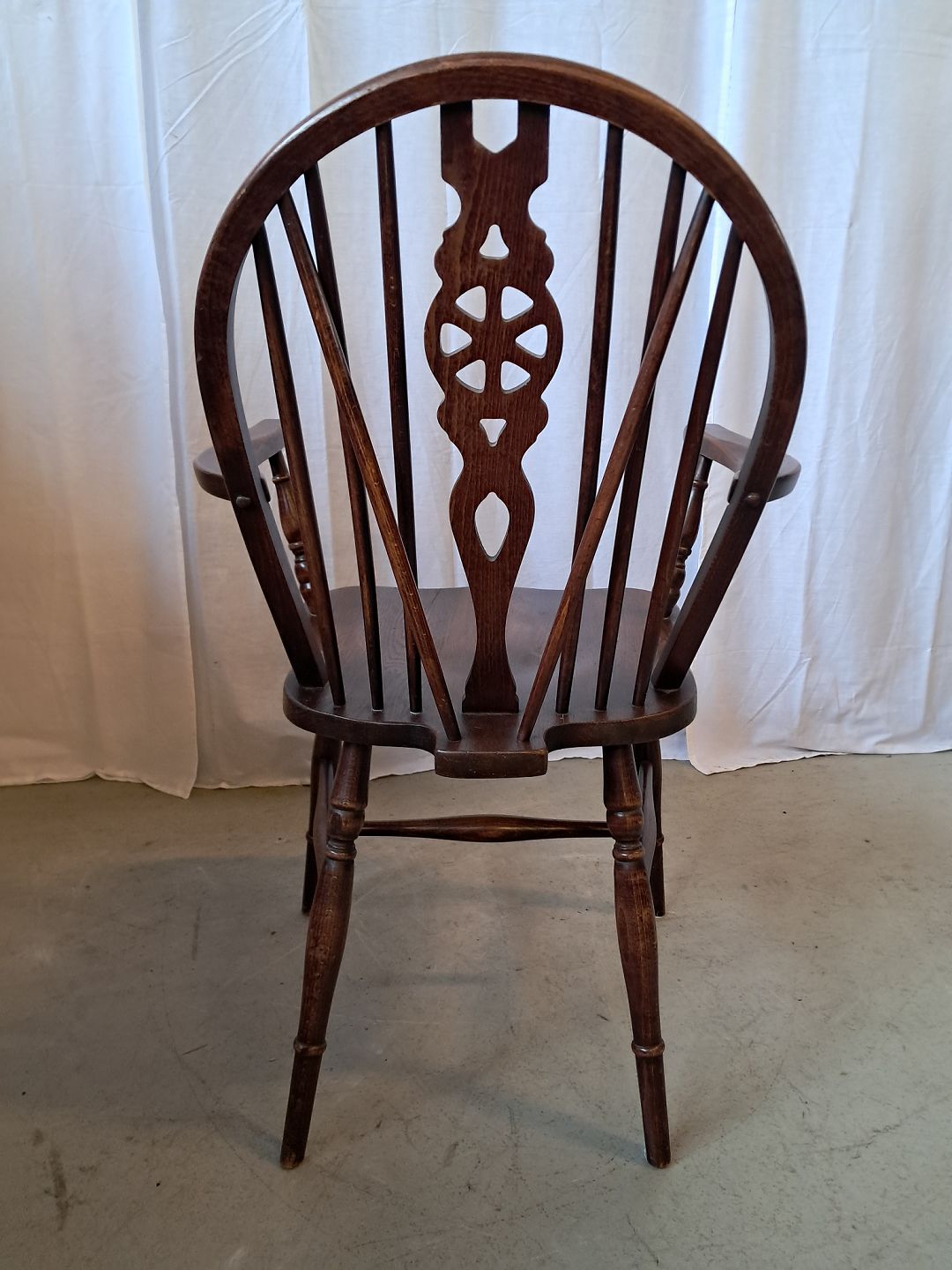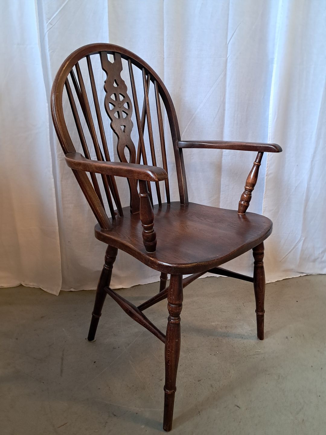 Armstol i massivt egetræ, fra 1950erne. Den har små brugsspor. Ryghøjde 95cm Sædehøjde 46cm Emne nummer: 76896