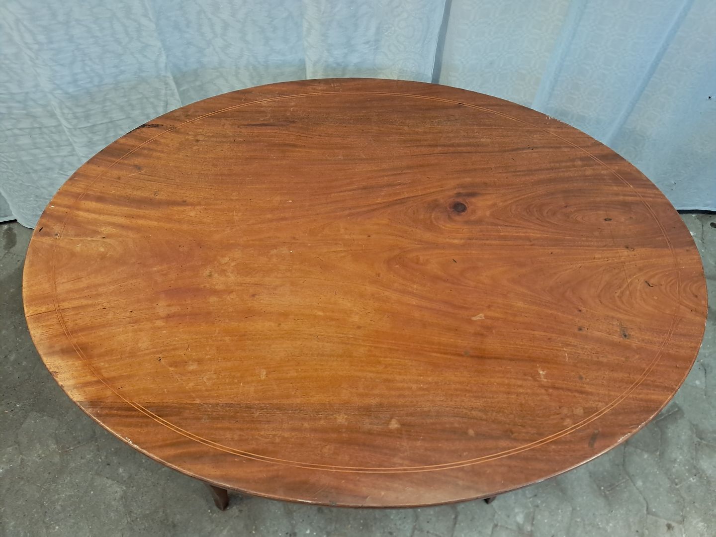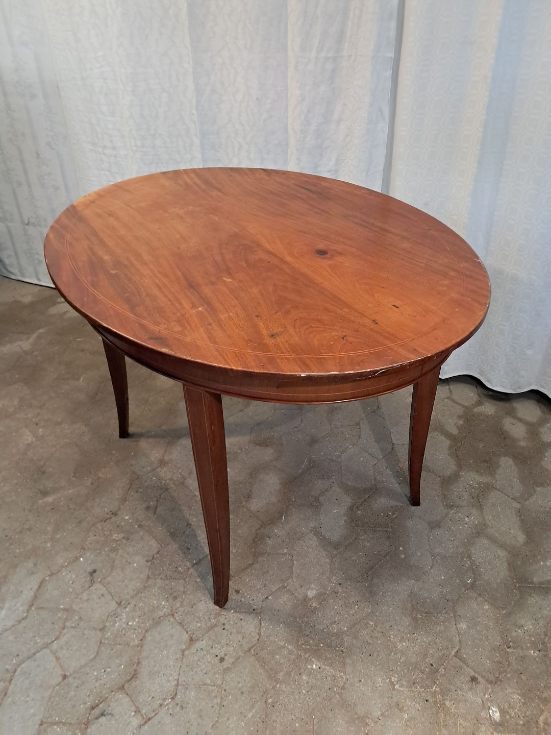 Ovalt salonbord i massivt mahogni, fra 1910erne. Det har brugsspor og rokker lidt, fordi det mangler 4 bolte.(se foto) Højde 78cm Bredde 94cm Længde 126cm Emne nummer: 91836