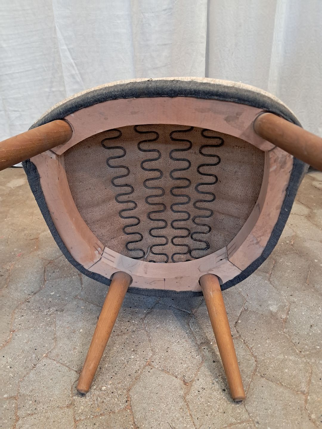 Lænestol med ben i bøgetræ, fra 1960erne. Betrækket har brugsspor. Ryghøjde 72cm Sædehøjde 39cm Emne nummer: 91838