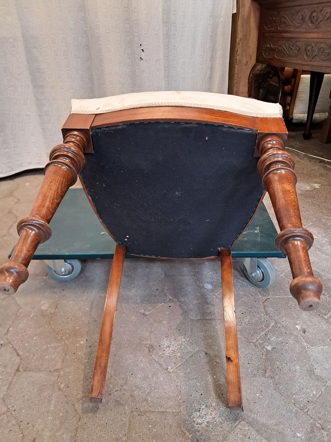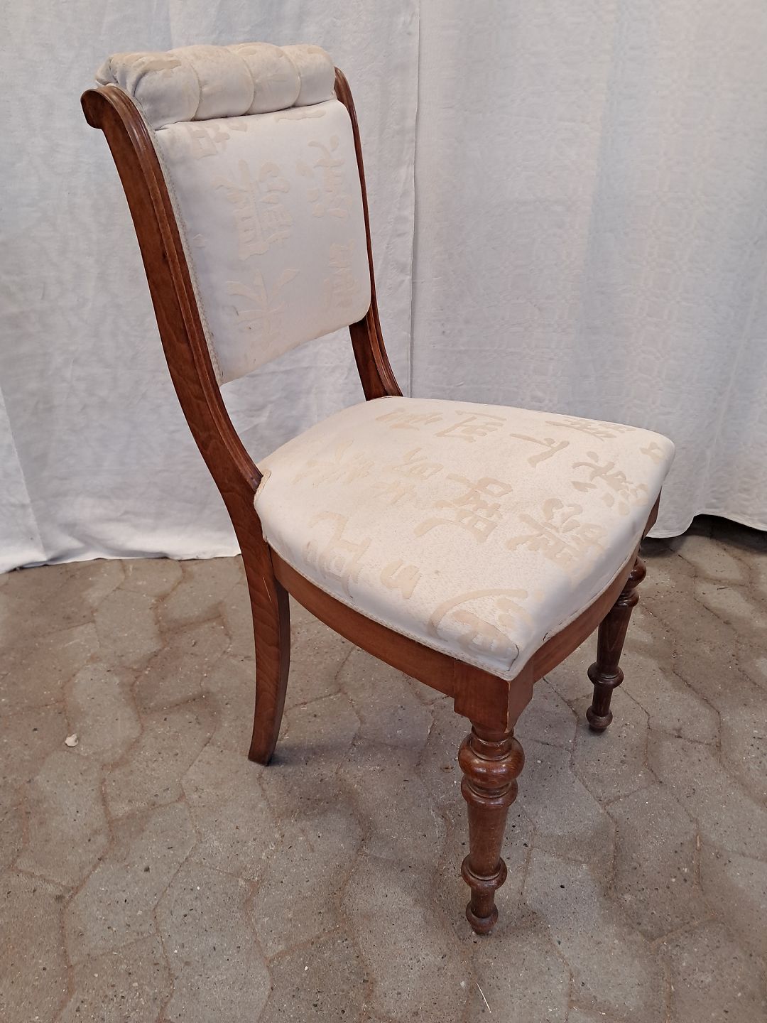 Salonstol i massivt bøgetræ, fra 1910erne. Betrækket har lidt brugsspor. Ryghøjde 87cm Sædehøjde 48cm Emne nummer: 91861