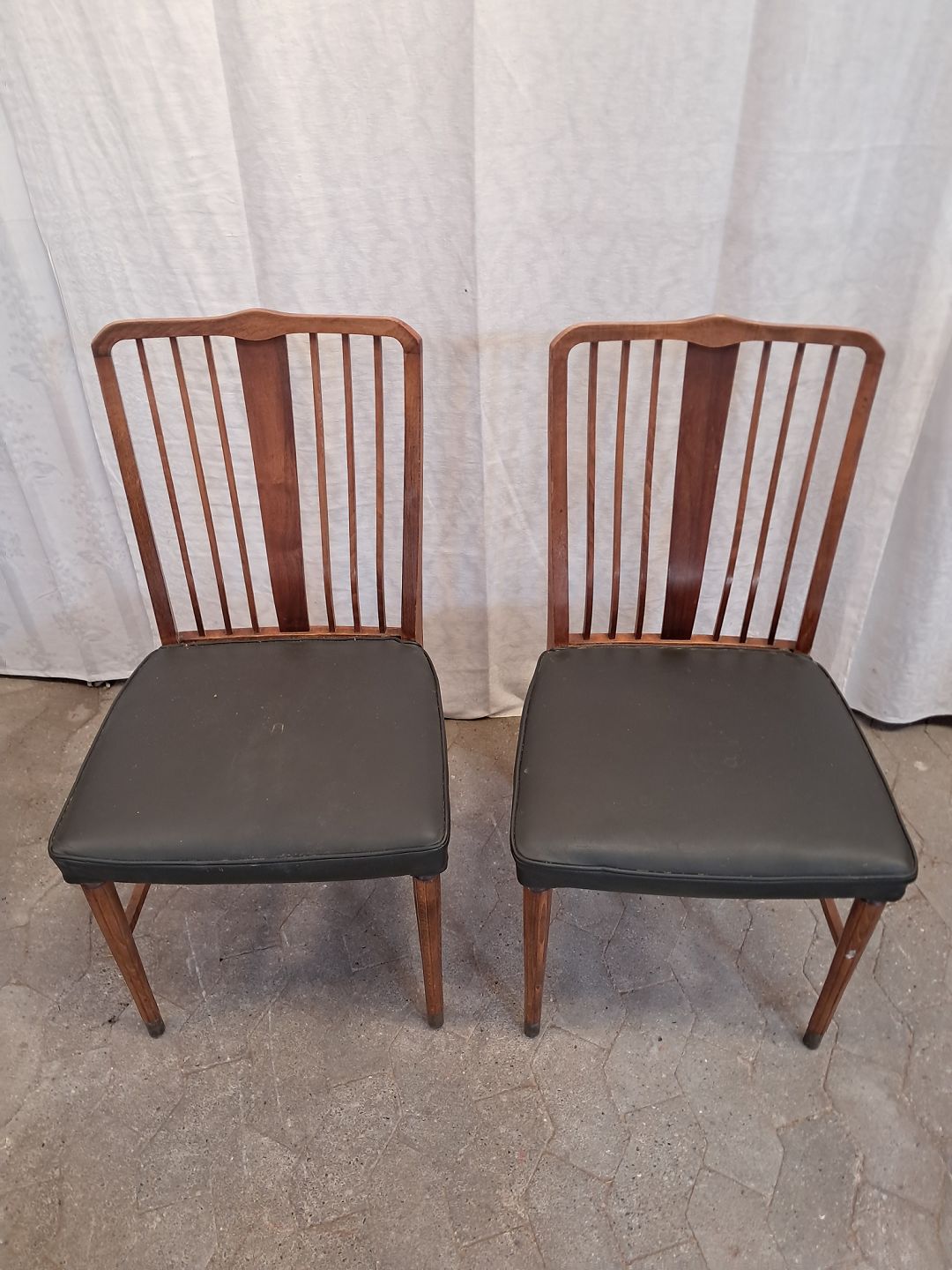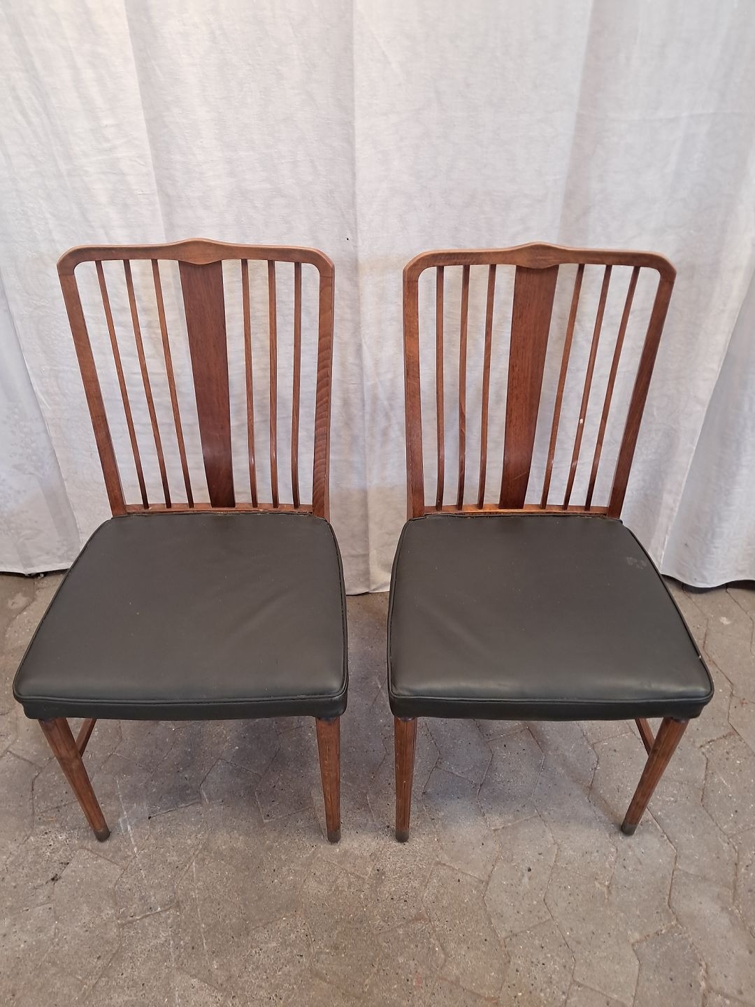 og 4 stole i nødetræ med kunstlæder betræk, fra 1950erne.